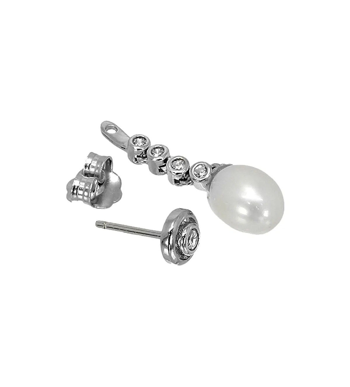 Fabricados en plata de ley, estos pendientes garantizan resistencia, brillo y durabilidad. La plata es un metal noble que no solo aporta elegancia, sino que también es hipoalergénico, ideal para pieles sensibles. Los detalles en circonita cúbica ofrecen una apariencia similar al diamante, captando la luz de forma espectacular. La perla cultivada de forma ovoide añade un toque clásico y refinado al conjunto, elevando su distinción.