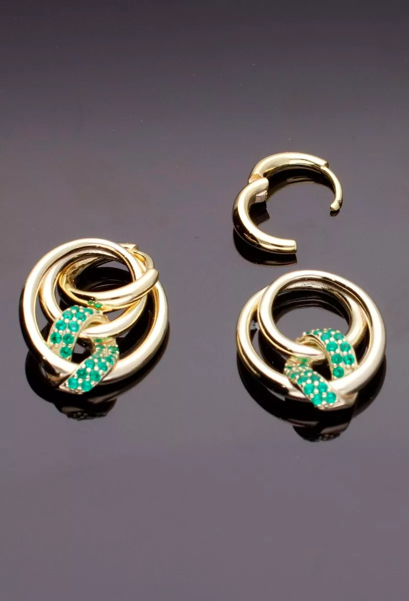 Pendientes largos plata chapada con piedras verdes, combinación de aros ovalados enlazados que cuelgan de un pendiente de aro que puedes separar y llevar solo si así lo precisases, el aro de menor tamaño con cuajado de piedras verdes, los pendientes largos de plata chapada con piedras de color verde esmeralda son una preciosa contribución a tu look. Están hechos con plata de primera ley 925 mmas con la mejor calidad chapada en oro y están decorados con piedras de color verde esmeralda de primer nivel. Estos pendientes son perfectos para añadir un toque de lujo a un look informal o para completar un conjunto elegante. Estos pendientes tienen un estilo moderno y clásico al mismo tiempo, que seguro que te hará lucir increíble. Se ajustan a la oreja mediante sistemas de presión, cómodos y muy seguros.