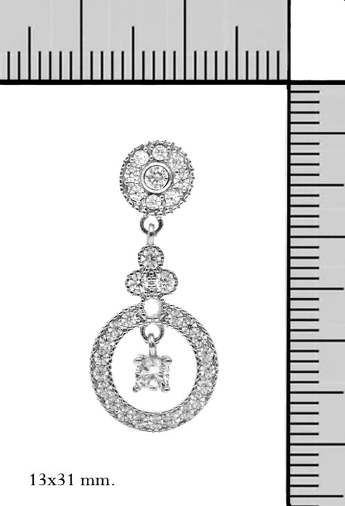 Pendientes largos de plata y circonitas motivo circular, exclusivo modelo ideal para lucir en ocasiones especiales incluso utilizar como pendientes de novia, combinacion de plata y circonitas en motivos circulares que aporta elegancia y distincion, aprovecha nuestro gran descuento y compra calidad al precio más barato.
