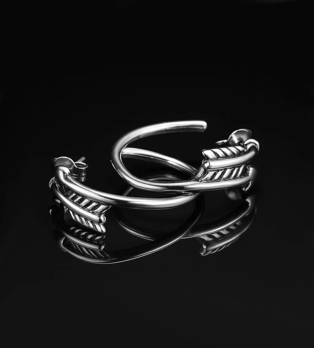 Pendientes de plata de aro con diseño tribal en forma de flecha: modernidad y cultura en tu estilo