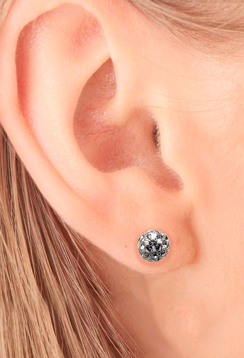 Pendientes plata de ley bola 6 milímetros bola de resina cuajada de cristales checos con pernios y sistemas de presión, un regalo precioso que le encantará llevar y que puedes comprar al precio más barato en nuestra joyería online.
