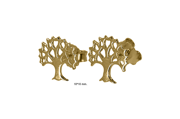 Pendientes en plata de ley. Árbol de la vida en 10*10 mm. Chapado en color oro amarillo, diseño calado, acabado en brillo, con un solo gramo de peso es una prenda muy cómoda y fácil de llevar. Cierre de presión.