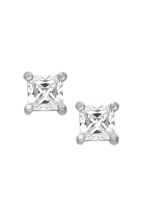 Pendientes en plata de ley, tipo dormilona para mujer, circonita engarzada en garra. 5*5 mm.. Peso aproximado: 1,00 gr. Cierre de presión.