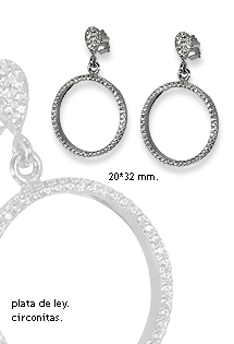 Aretes largos en plata de ley, aro con galería de circonitas. Medidas: 20*32 mm. Peso aproximado: 4,30 gr. Cierre de presión.