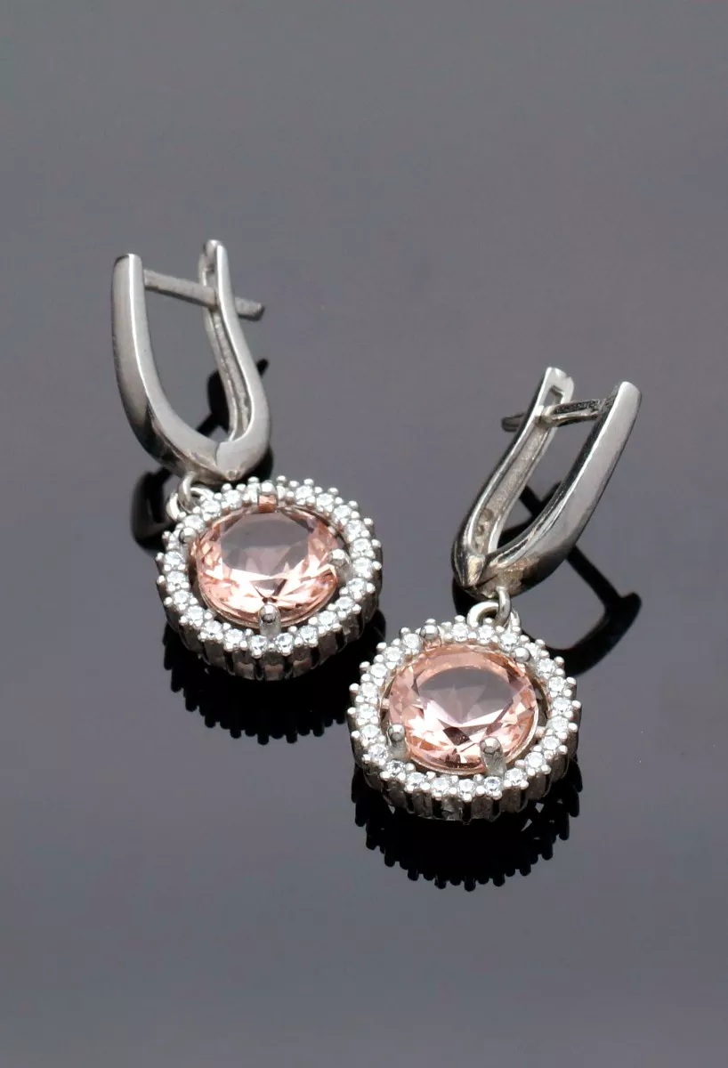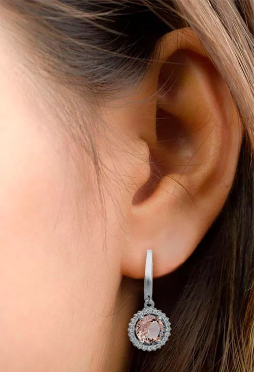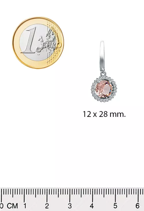 Pendientes plata orla colgando de ballestilla, precioso modelo con toque revival para ser la mujer más elegante de la ocasión, hemos utilizado un cuarzo de tono rosa palo tallado en redondo y rodeado por una orla de circonitas engastadas en garras individuales, toda la roseta esta colgando de un fuerte sistema de ballestilla, broche que completa el modelo ademas de proporcionar un fuerte seguro y cómodo cierre. No vas a pasar desapercibida cuando los lleves pero si estaras comunicando que eres una mujer con gustos elegantes y delicados .