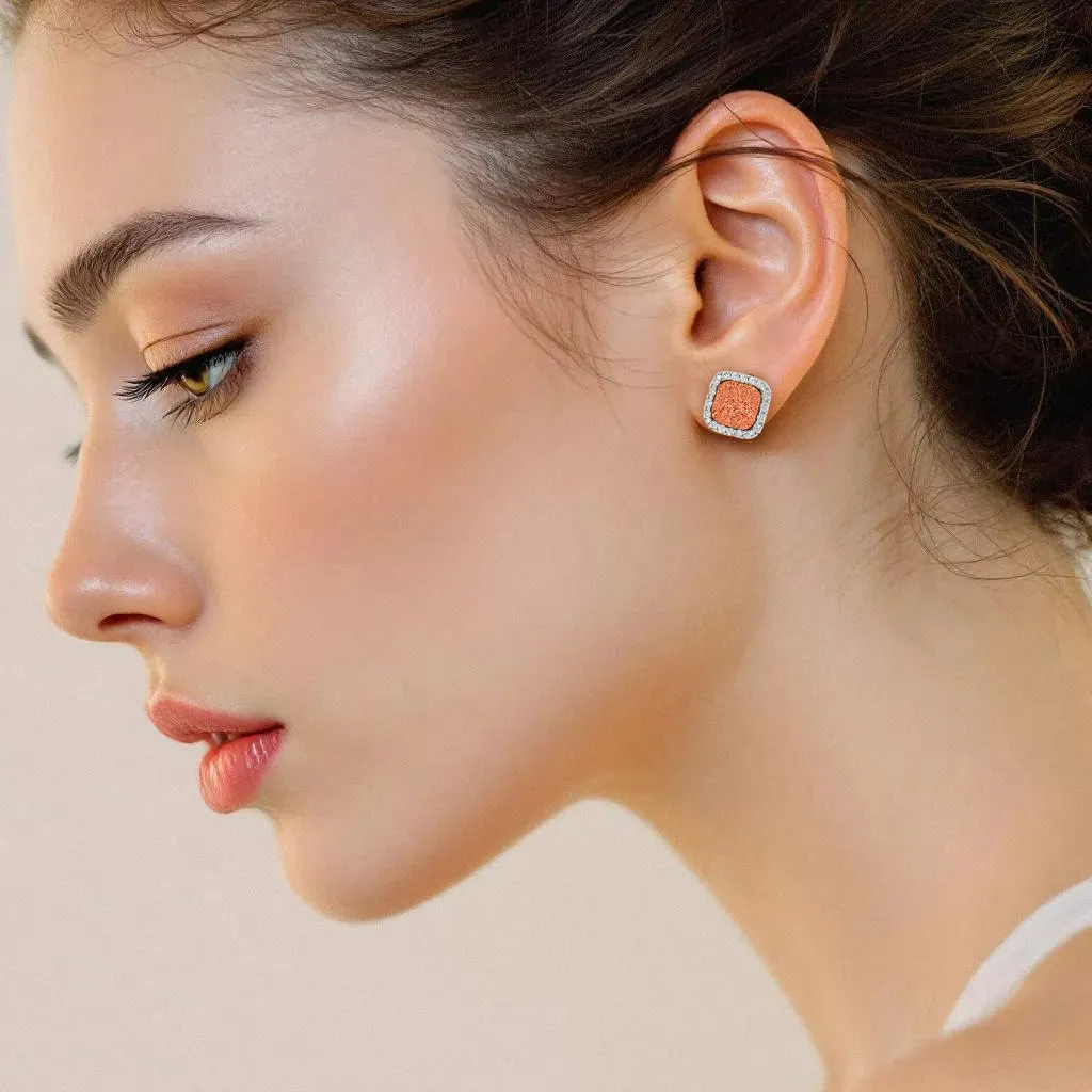 El diseño cuadrado de 12×12 milímetros aporta carácter y modernidad a la pieza, diferenciándola claramente de los formatos tradicionales. La combinación entre la estructura geométrica y la irregularidad natural de la drusa crea un equilibrio visual atractivo y elegante.
