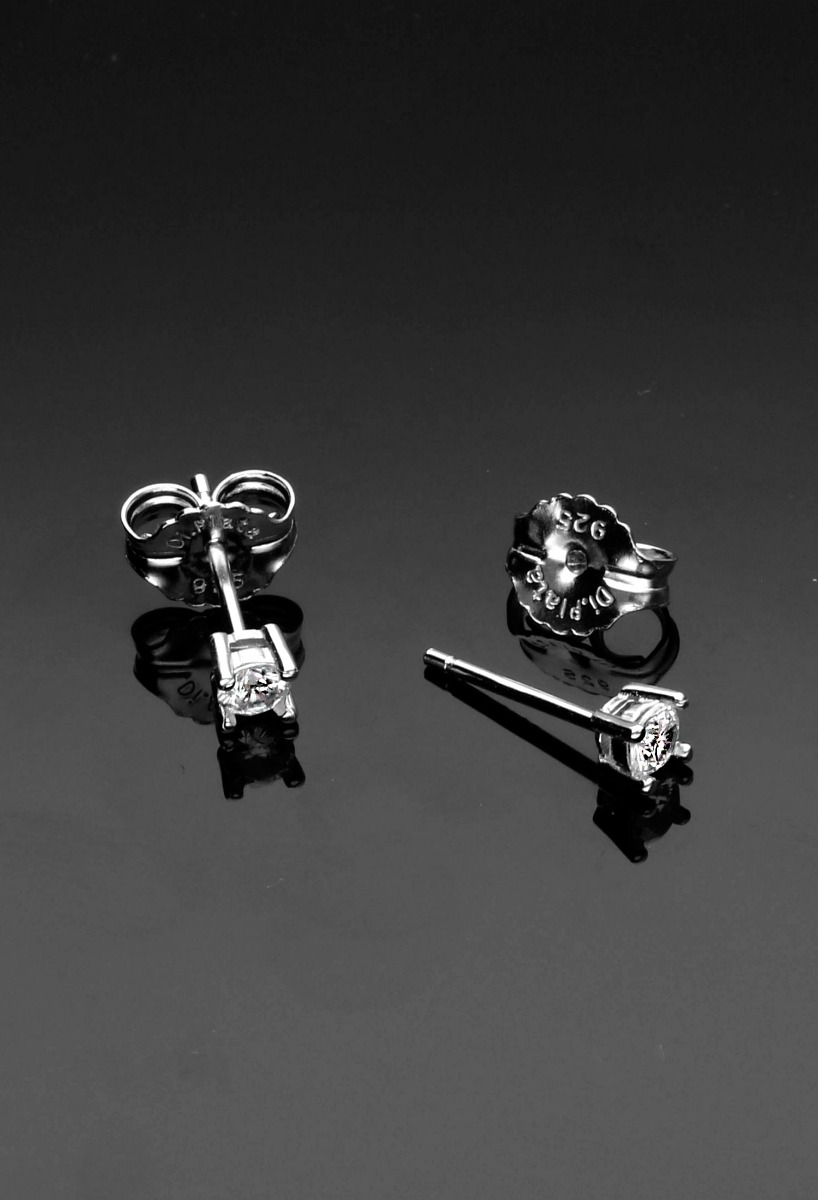 Pendientes en plata de ley, tipo dormilona para mujer, circonita engarzada en garras de 4 patas. 4 mm. Peso aproximado: 0,90 gr. Cierre de presión.