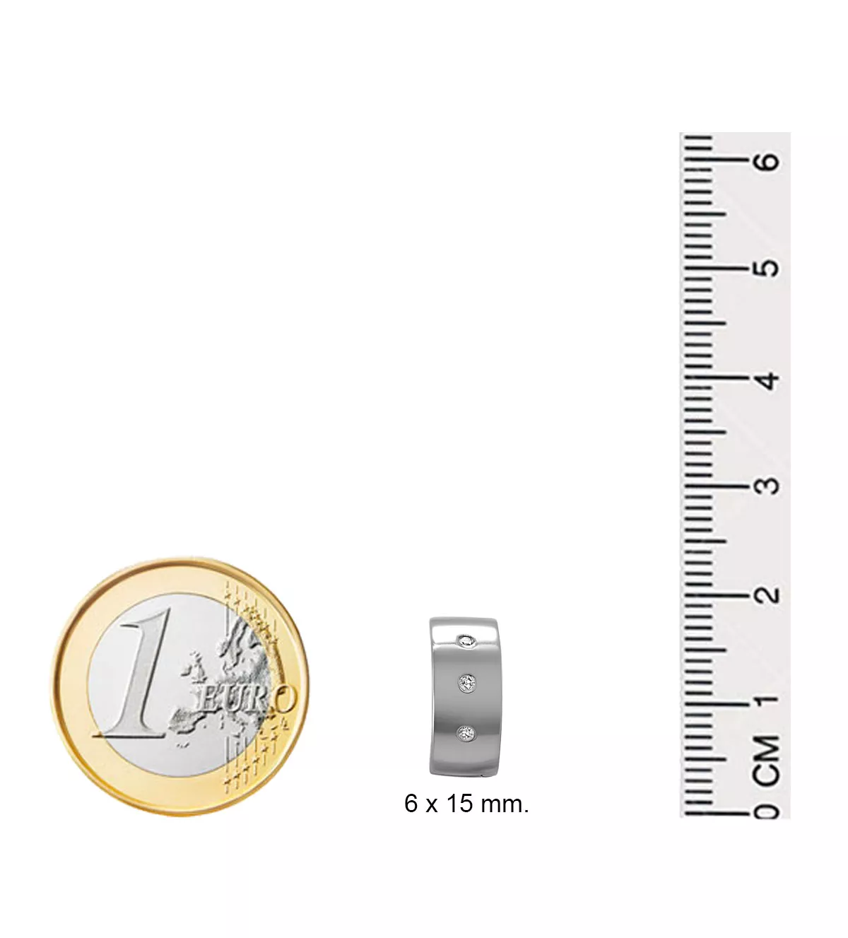 Estos pendientes están fabricados en plata de ley de alta calidad, lo que garantiza su durabilidad y resistencia al paso del tiempo. Las tres circonitas de pequeño tamaño, engastadas a ras longitudinalmente, aportan un brillo sutil y sofisticado.