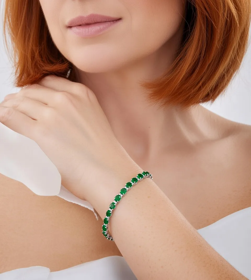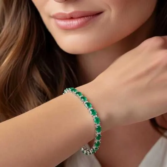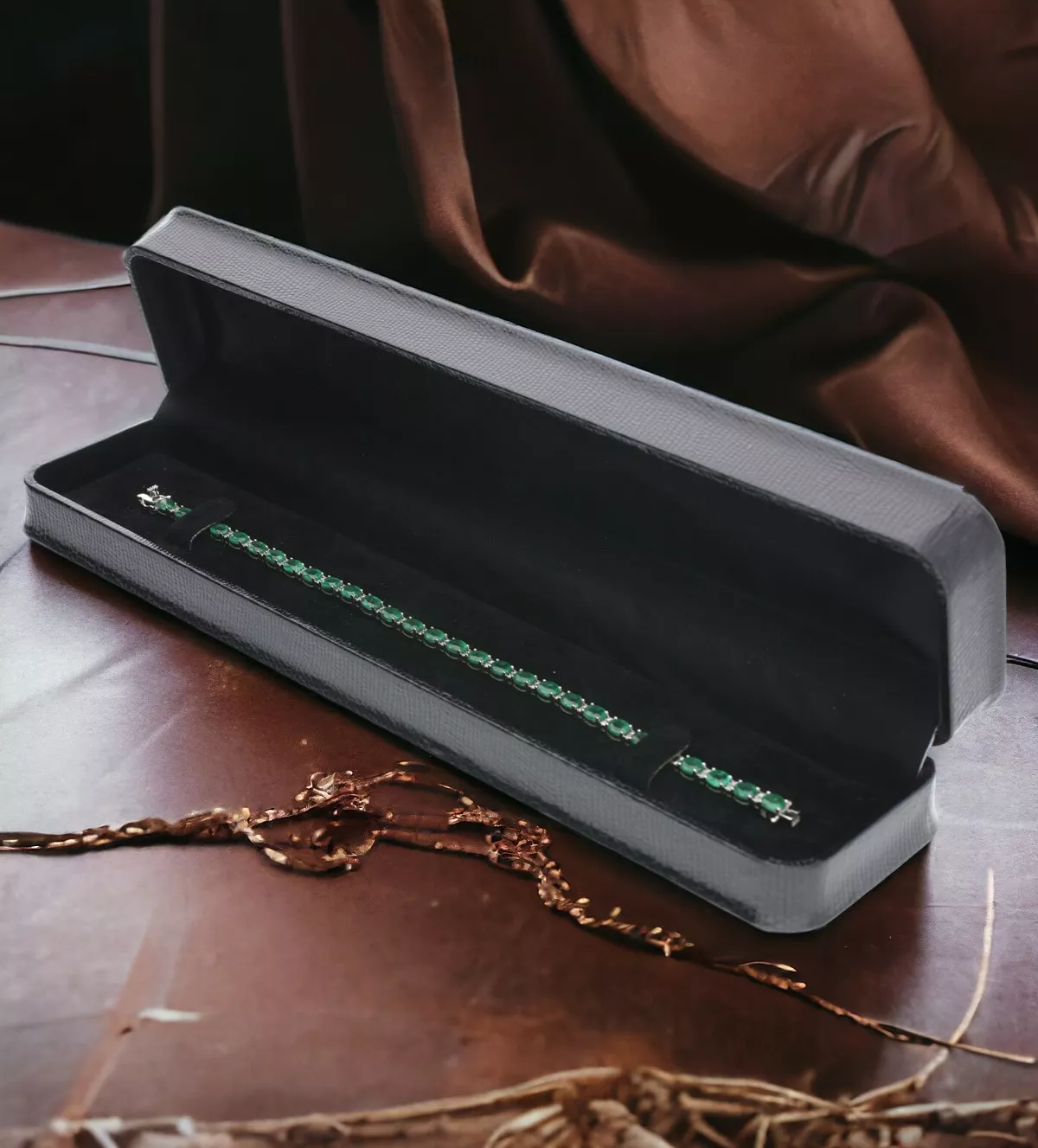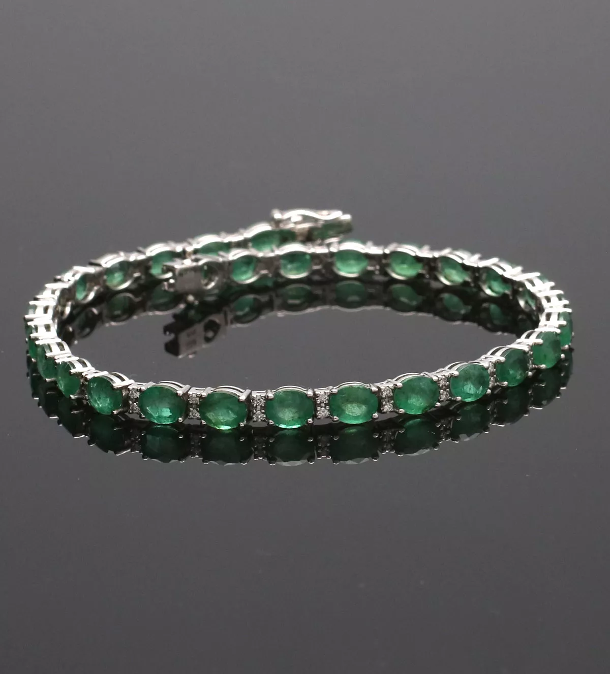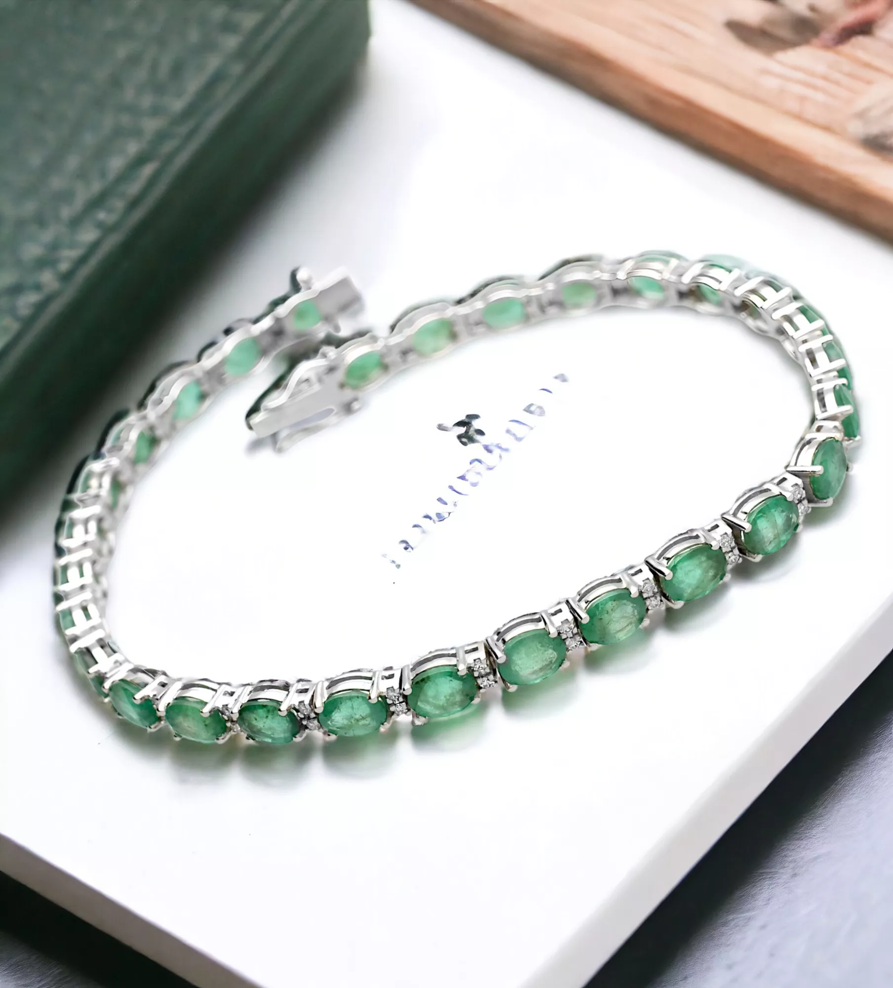 Las esmeraldas son gemas que simbolizan renovación, esperanza y prosperidad. A lo largo de la historia, han sido apreciadas por su vibrante color verde y su asociación con la naturaleza y la vitalidad. Los diamantes, por otro lado, simbolizan pureza, eternidad y fortaleza. Juntos, en esta pulsera, representan un equilibrio perfecto entre renovación y permanencia, creando una joya que no solo es hermosa sino también rica en significado.