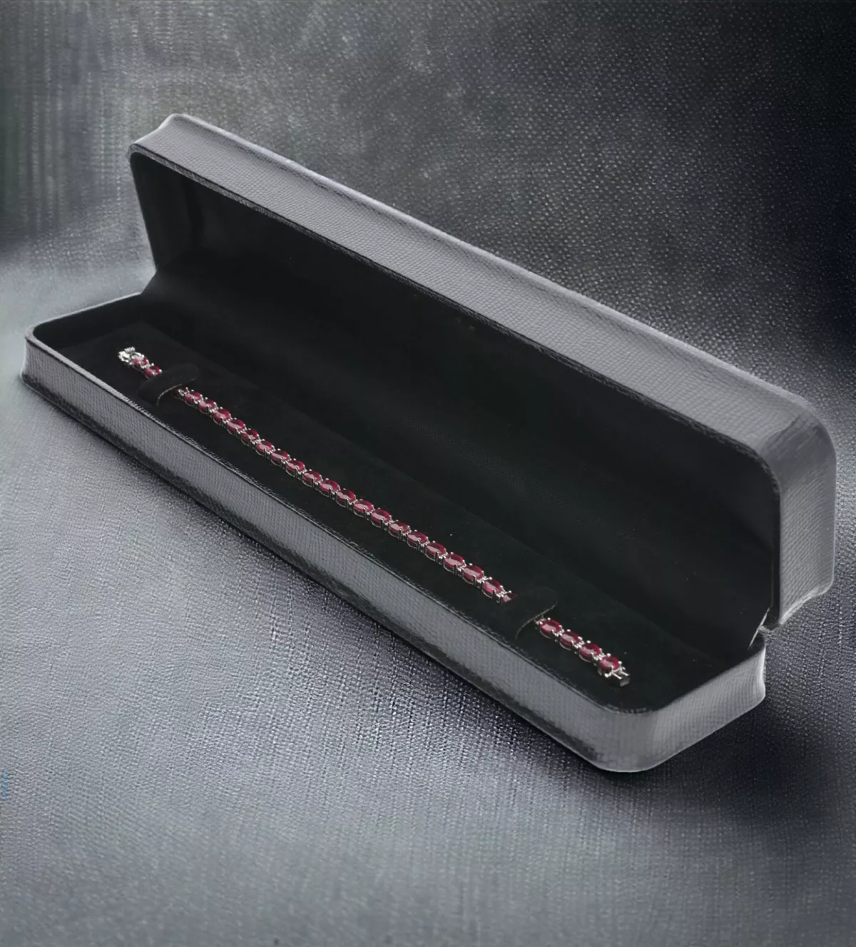 La pulsera está fabricada en oro blanco de 18 quilates, un material preciado por su durabilidad y brillo sofisticado. El oro blanco es ideal para resaltar el esplendor de las piedras preciosas, proporcionando un contraste elegante que realza tanto los rubíes como los diamantes. Este metal precioso garantiza que la pulsera mantenga su belleza a lo largo del tiempo.