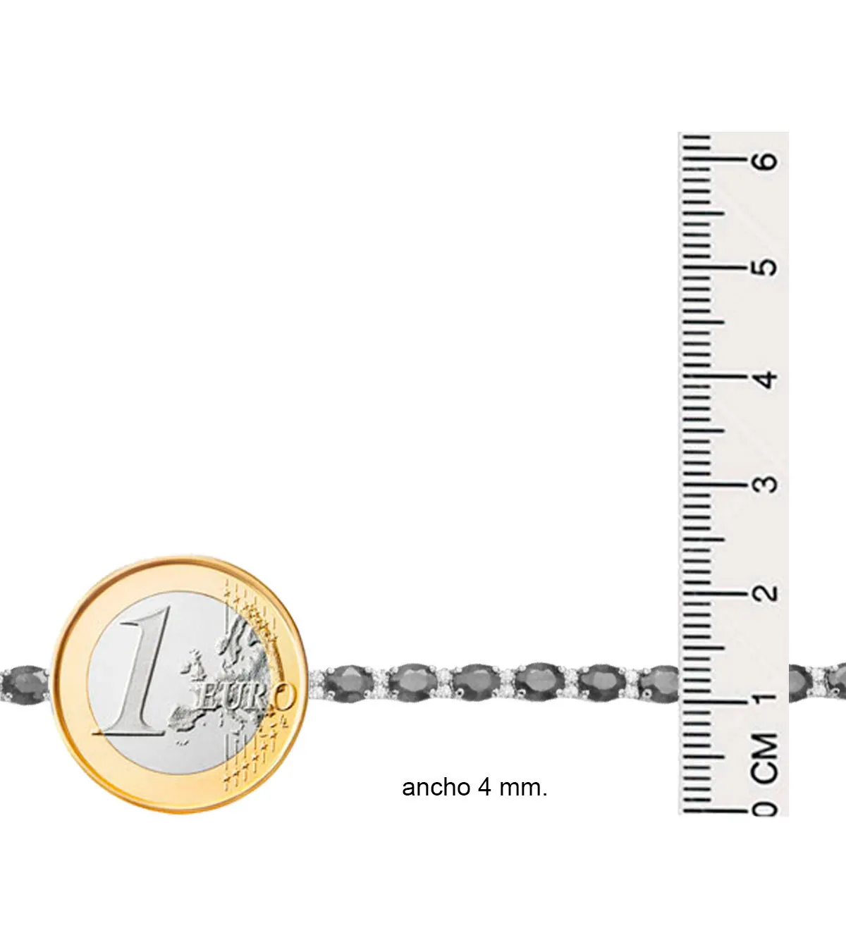 El diseño de la pulsera es de estilo tenis, conocido por su fila continua de piedras preciosas que proporciona un look elegante y uniforme. Este diseño clásico es apreciado por su versatilidad y capacidad para complementar cualquier atuendo, desde el más casual hasta el más formal. Las piedras preciosas están dispuestas de manera uniforme, creando una apariencia armoniosa y sofisticada.