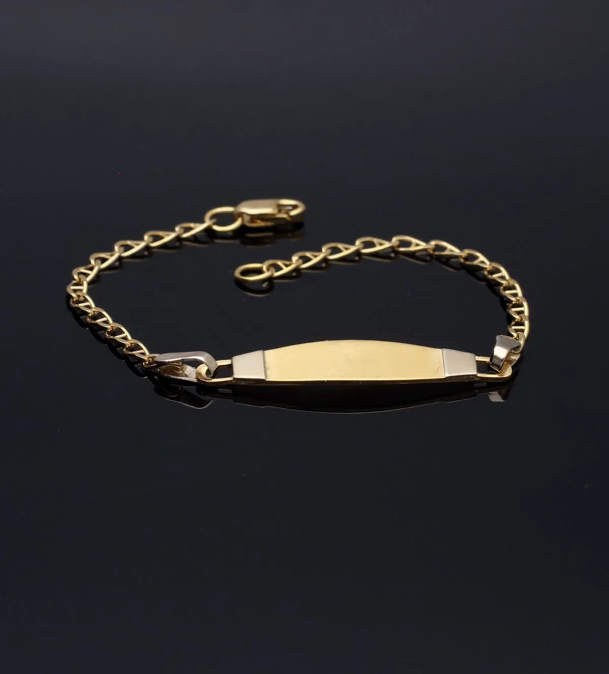 Regalar una pulsera de oro a un recién nacido es una tradición que simboliza protección, bendición y buenos deseos para el futuro. El formato esclava, unido al diseño de la chapa tipo nave, sugiere una travesía vital que comienza con fuerza, dulzura y propósito.