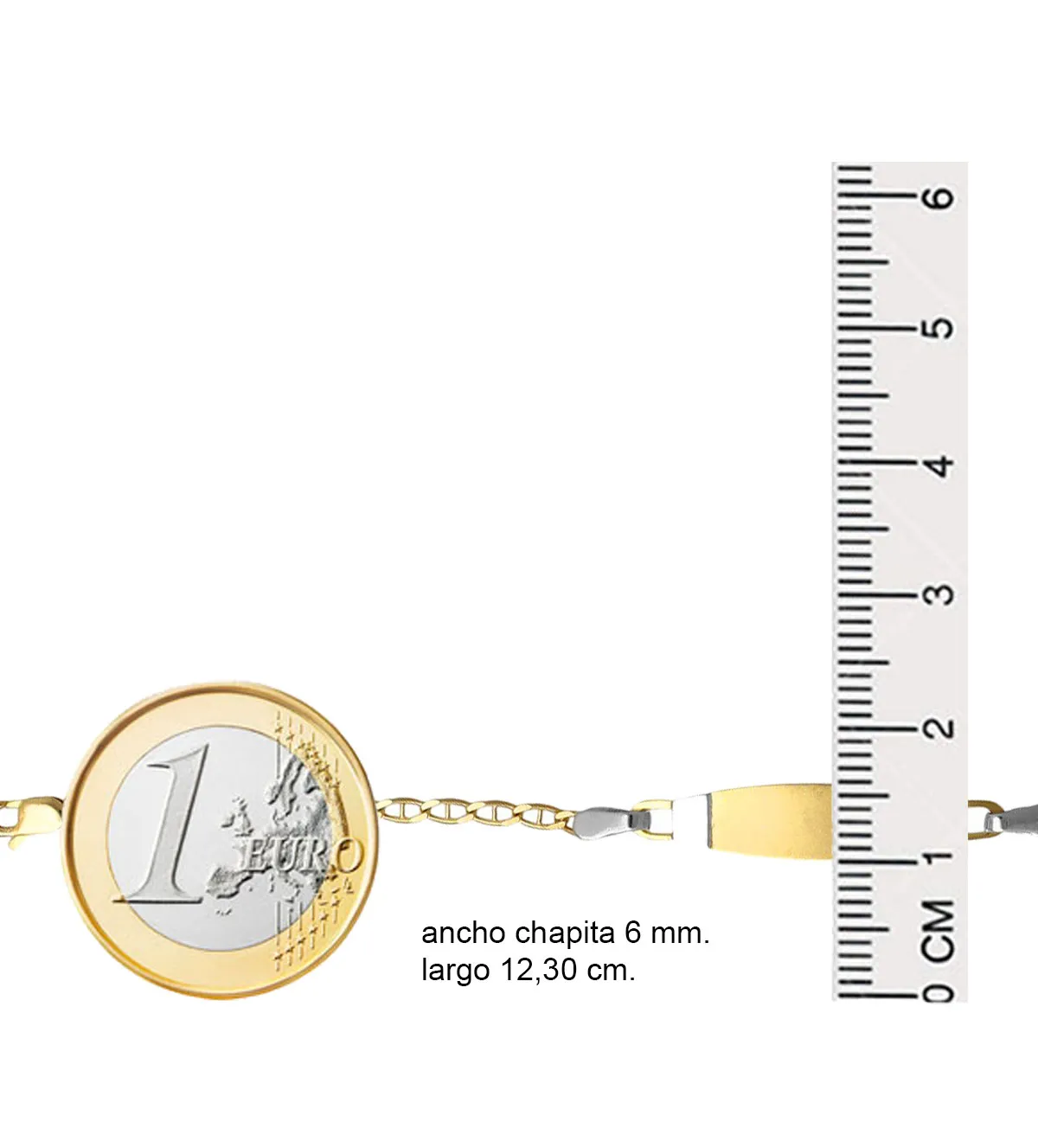 La combinación de oro amarillo con detalles en oro blanco añade un plus de elegancia que distingue esta joya de otras pulseras infantiles más comunes.