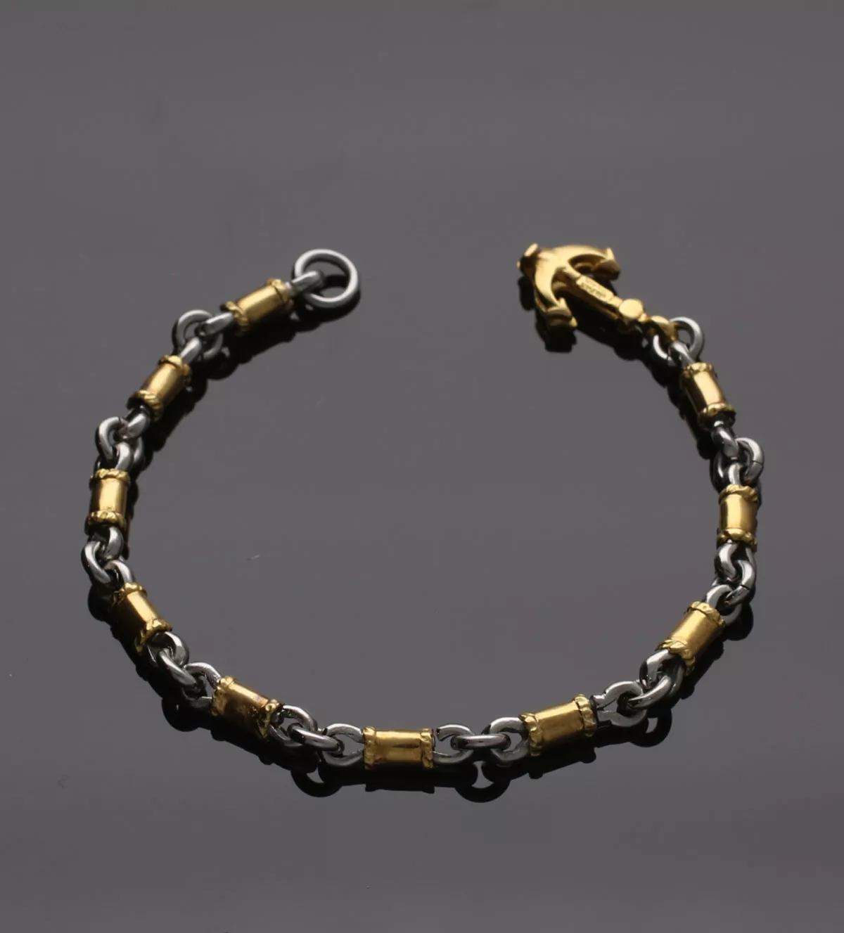 Pulsera de oro y acero 18k INDUSTRIAL, un ancla de oro y acero que simboliza estabilidad y fuerza. La pulsera perfecta para un regalo que nunca olvidará. ¡Un tesoro para siempre! ¡Hazla tuya!”