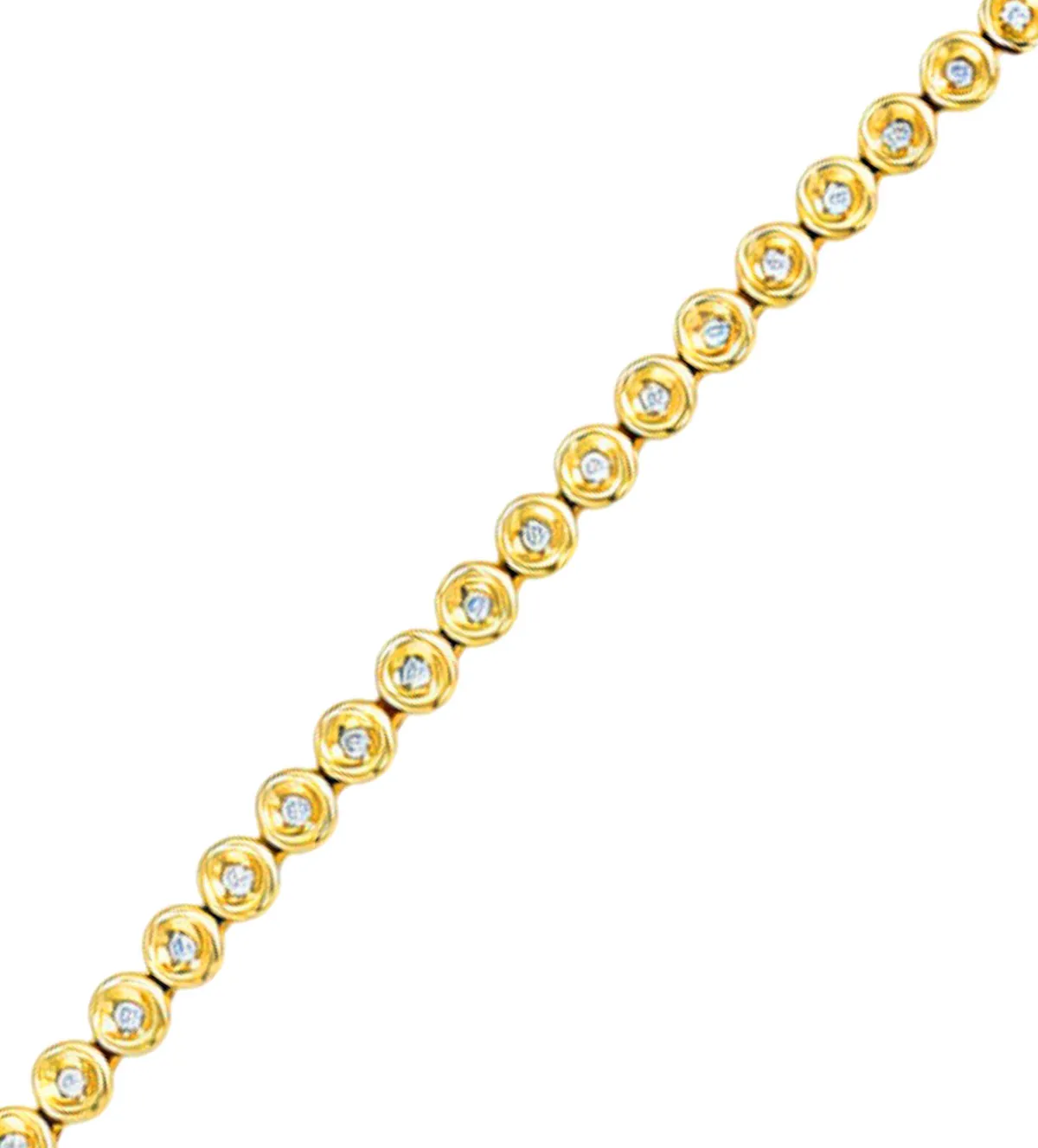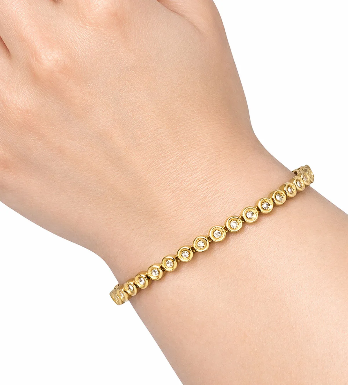 La pulsera de oro rivière es un básico imprescindible en cualquier joyero femenino por su versatilidad y su capacidad para aportar distinción inmediata.