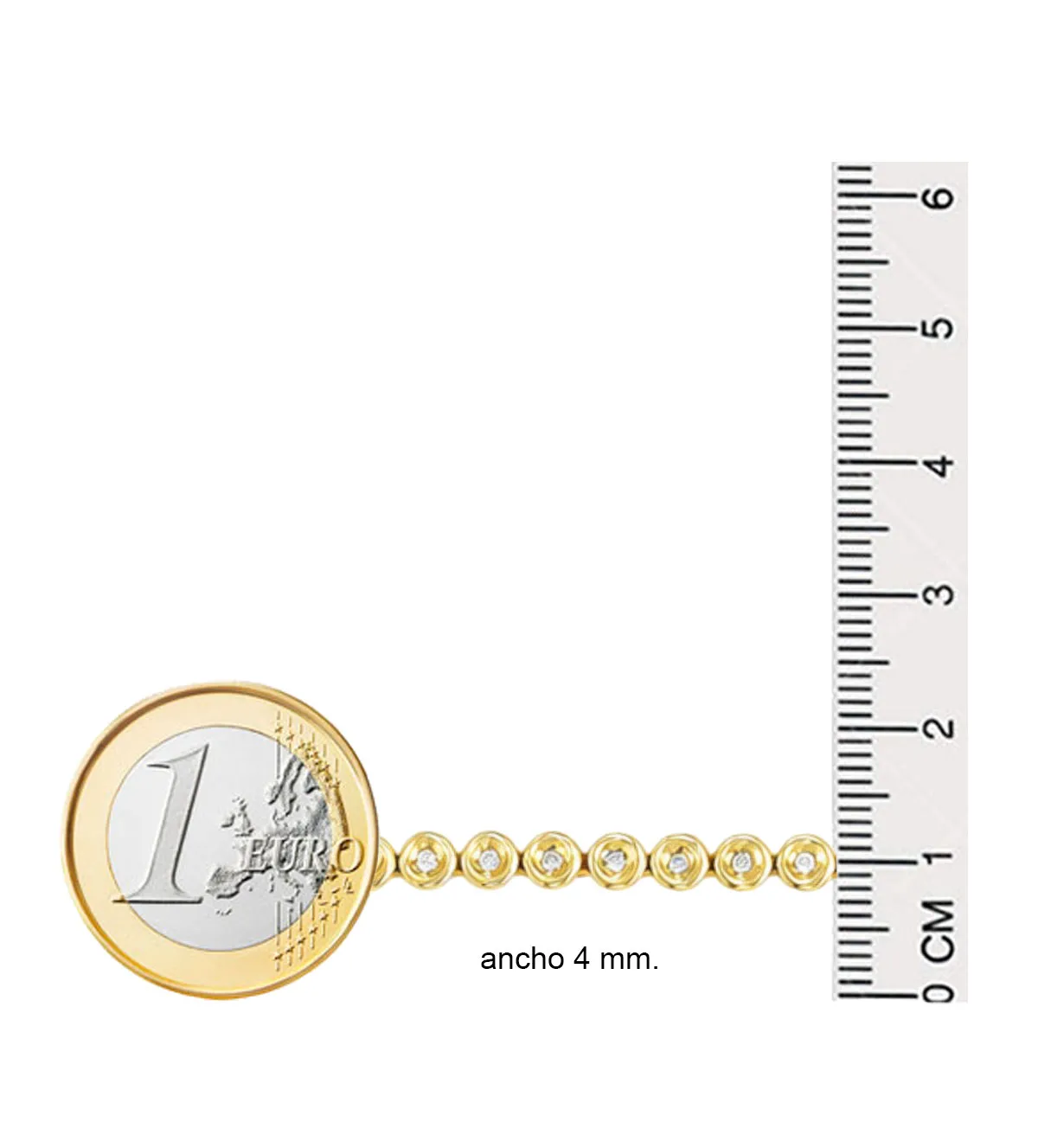 El diseño rivière es uno de los más icónicos dentro de la joyería femenina porque combina sencillez estructural con un impacto visual extraordinario. Esta pulsera de oro mantiene una anchura uniforme de 4 mm, lo que permite que los diamantes sean protagonistas sin romper la delicadeza de la pieza.