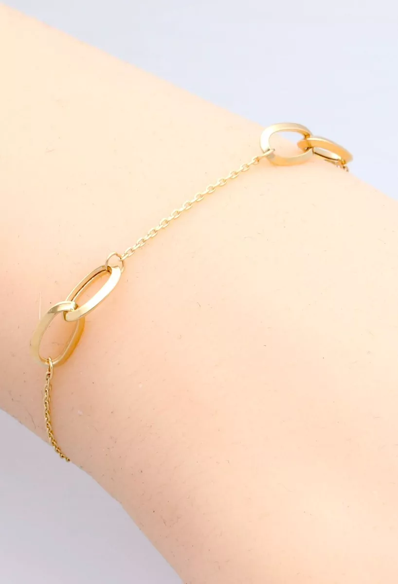 No esperes más para añadir este toque de distinción a tus accesorios favoritos. Nuestra Pulsera oro 18k entrepiezas formadas por asas elevará tu confianza y te hará brillar como nunca antes. ¡Adquiérela ahora mismo y descubre cómo transformará tus looks en algo magnífico!