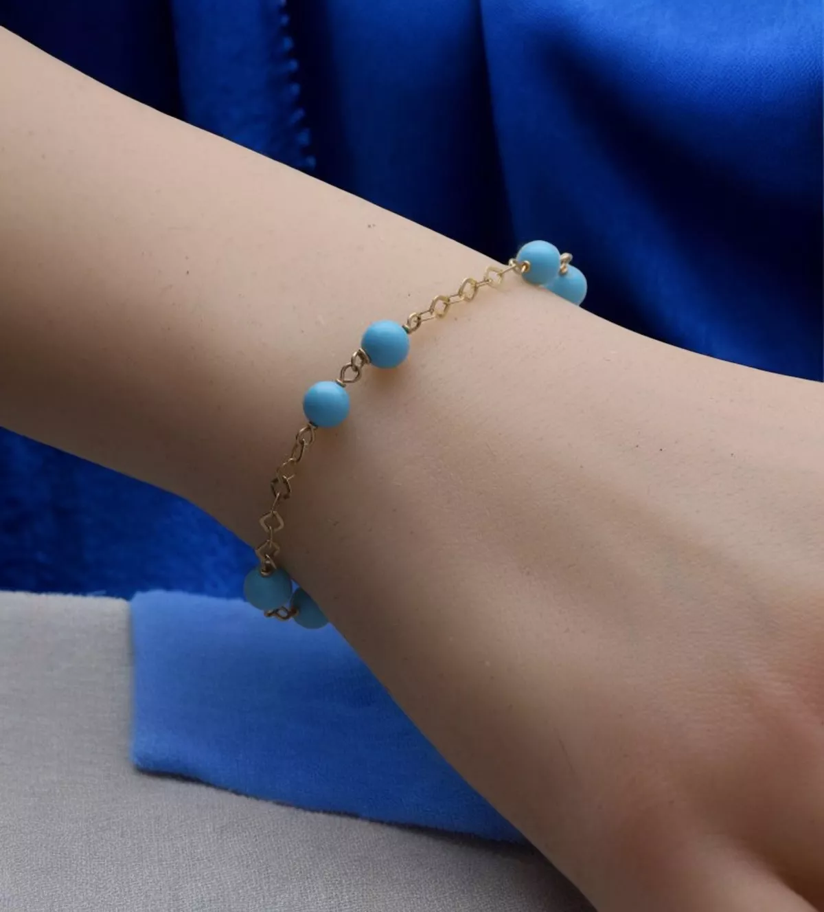 Pulsera de oro 18k con bolas de turquesa: color y elegancia en perfecta armonía