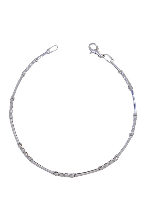 Pulsera de oro blanco primera ley 18 kilates modelo formado por tramos rectos que se alternan con galería recta de 4 circonitas engastadas en chatón, bonito modelo de línea sencilla que consigue combinar con todos los estilos y complementar cualquier look , el cierre es tipo mosquetón muy seguro y cómodo para poner y quitar.