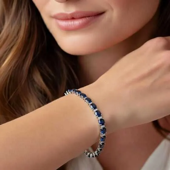Para mantener la pulsera en perfectas condiciones, es recomendable limpiarla regularmente con un paño suave y evitar exponerla a productos químicos fuertes. Guardarla en un lugar seguro cuando no esté en uso también ayudará a preservar su brillo y belleza. Además, realizar limpiezas profesionales periódicas puede asegurar que los zafiros y diamantes sigan brillando con intensidad.