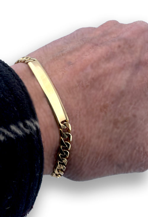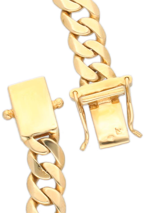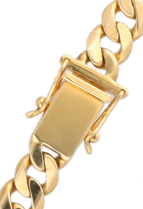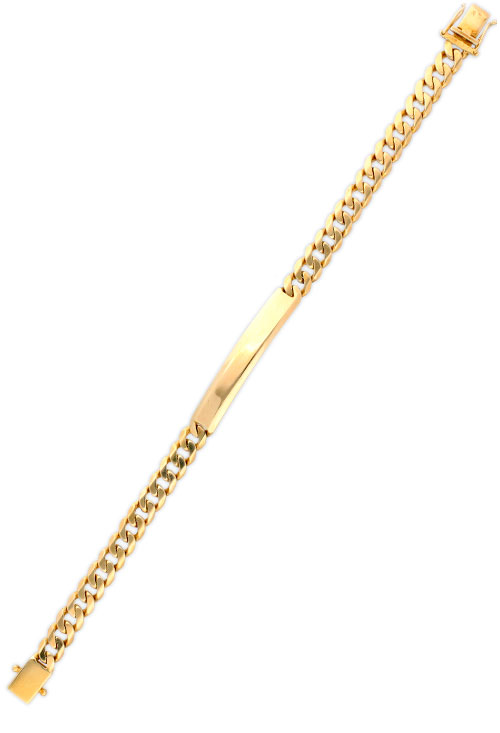 Pulsera de oro para hombre con chapa, bonita pulsera fuerte y sólida al ser completamente maciza, eslabones modelo forzado y chapa de biseles en cuña, dispone de un cierre de seguridad tipo lengüeta con doblecerrojillo de ocho uno a cada lado, es elm regalo ideal para recordar una fecha especial y a una persona más especial, una joya que pasa de generación en generación y recuerdo imborrable que siempre es un orgullo lucir.