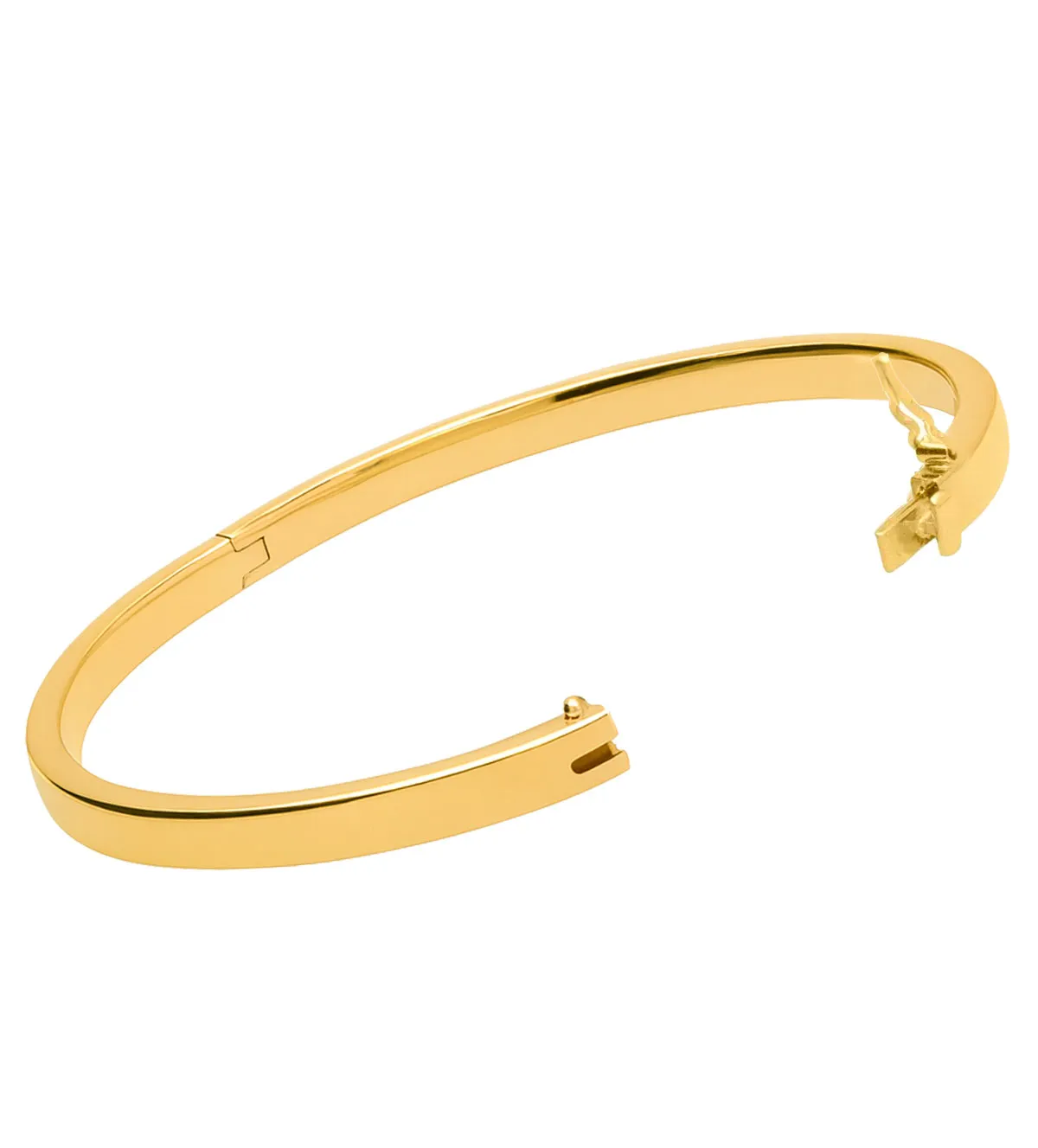 Gracias a su diseño rígido, la pulsera de oro se adapta de manera natural a la muñeca, ofreciendo un ajuste seguro sin sacrificar comodidad. Incluye un cierre de seguridad con lengüeta y cerrojillo lateral que facilita su colocación y, al mismo tiempo, brinda total tranquilidad a quien la lleva. Es una pieza práctica y elegante, pensada para acompañarte sin preocupaciones.