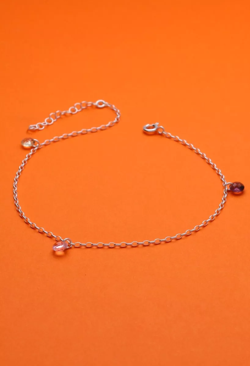 Pulsera de plata tobillera con 3 fetiches de cristal checo 240_T-PT1