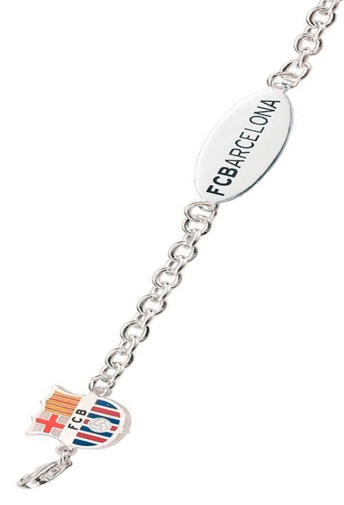 Pulseras de plata, esclava oficial del Fútbol Club Barcelona con chapa grabada y escudo esmaltado.