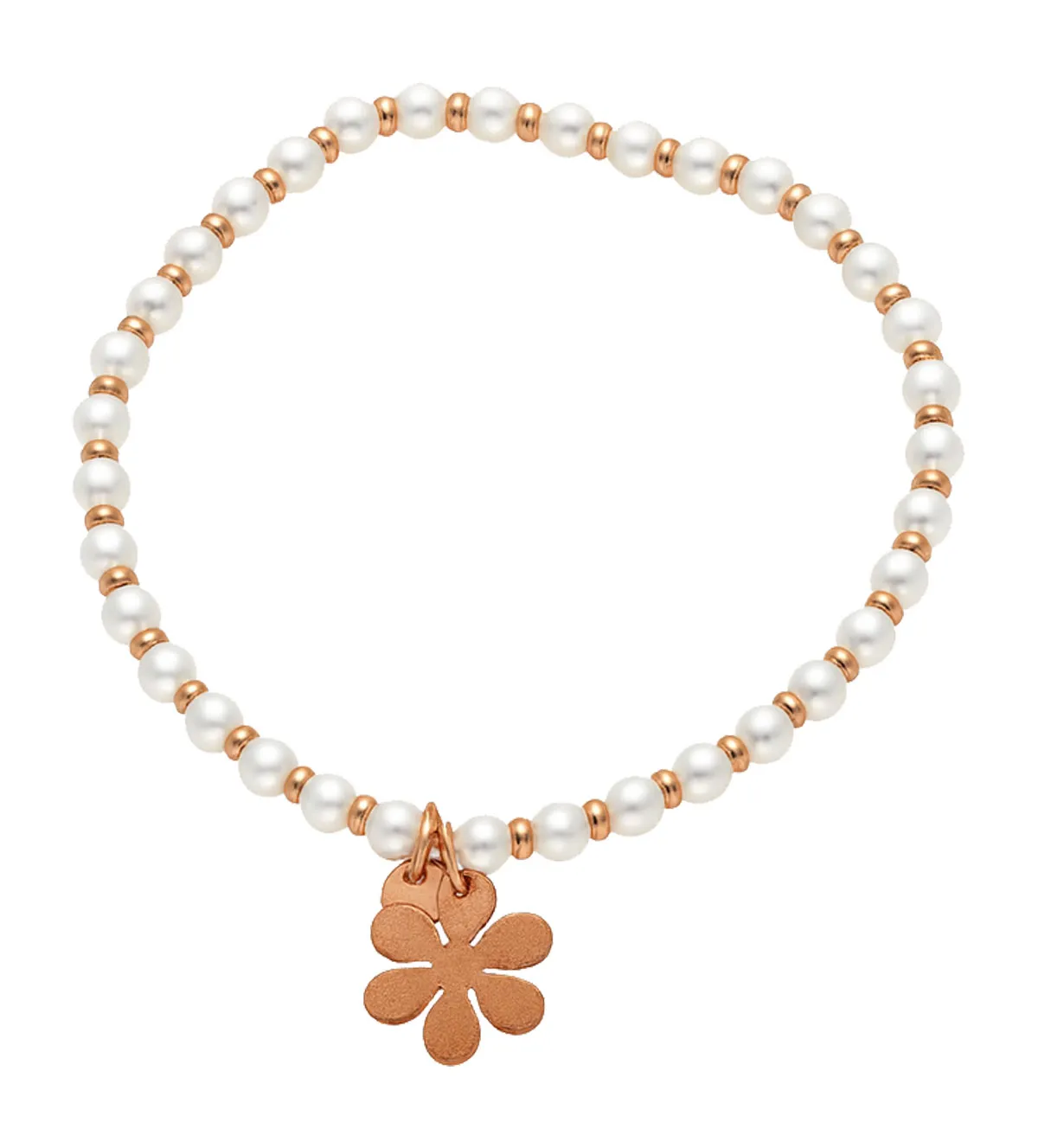 Las perlas han sido siempre símbolo de pureza, elegancia y sabiduría, lo que hace de esta pulsera un regalo cargado de significado en una ocasión como la Primera Comunión. La flor de seis pétalos representa la belleza y la renovación, mientras que el oro rosa añade un toque romántico y moderno. Con esta combinación, la joya se convierte en un detalle lleno de simbolismo y encanto.