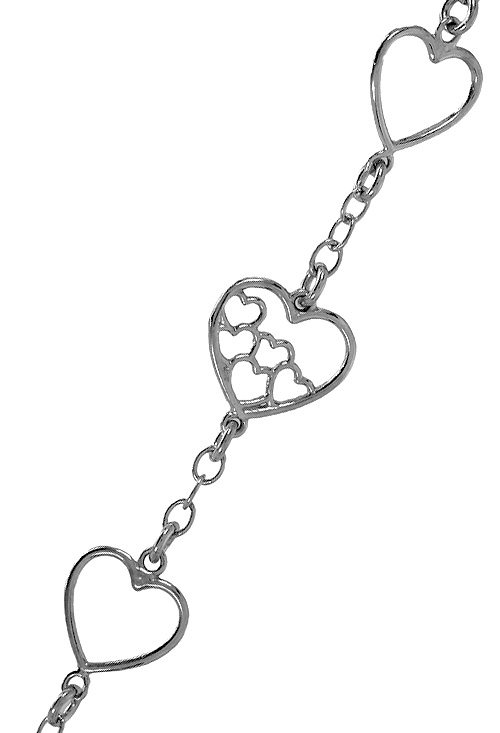 Pulsera de plata con entrepiezas forma de corazones. 240_PPU3786