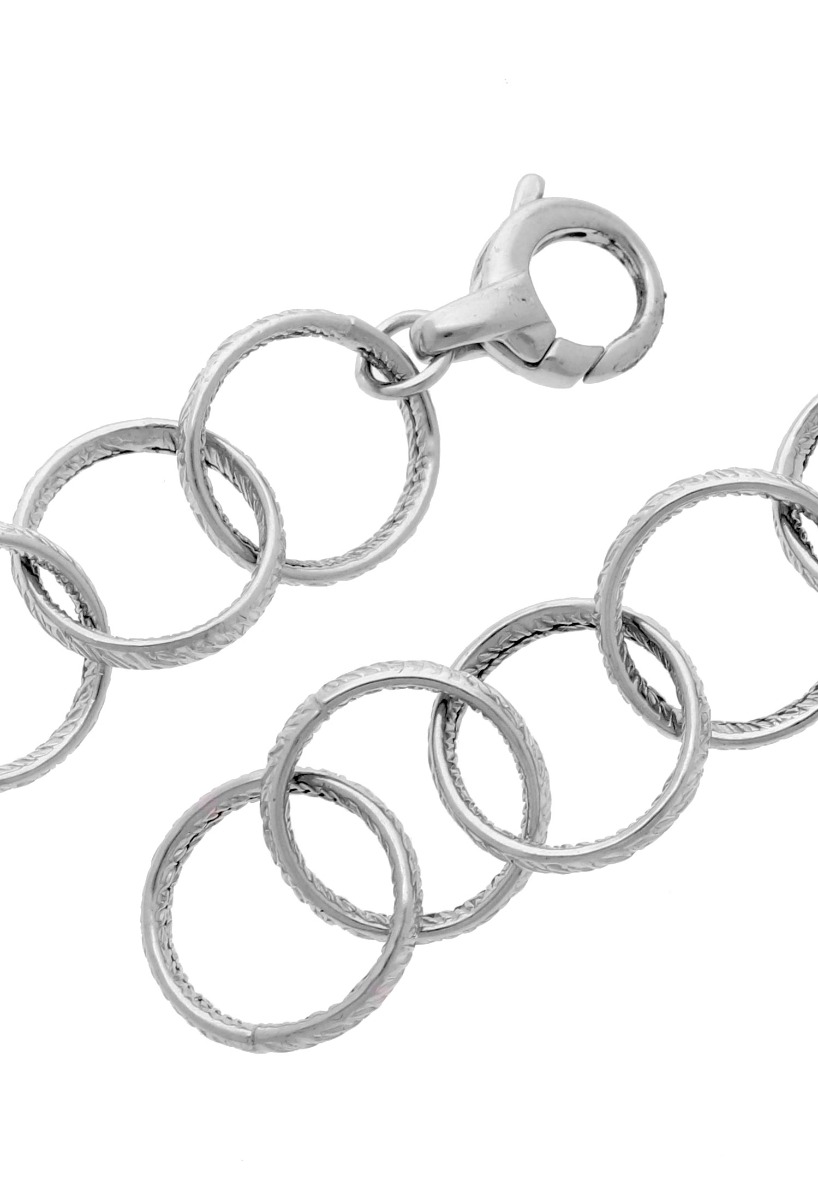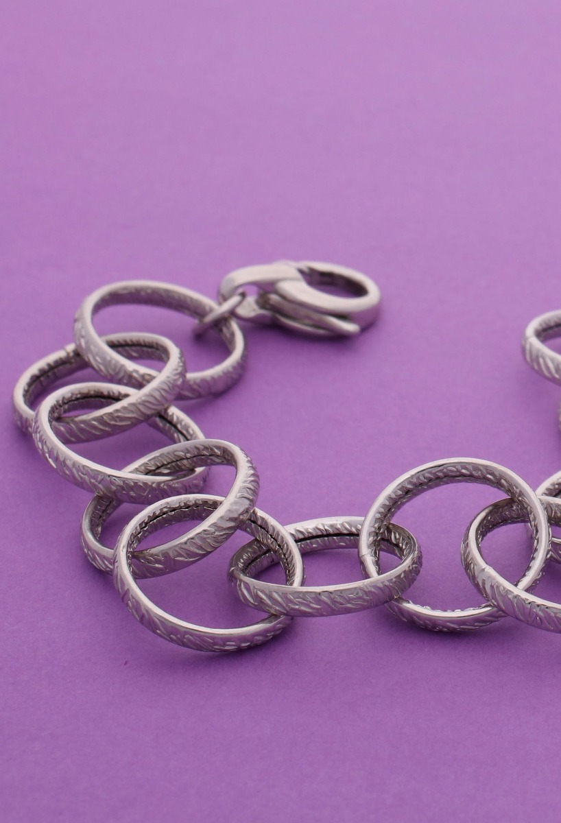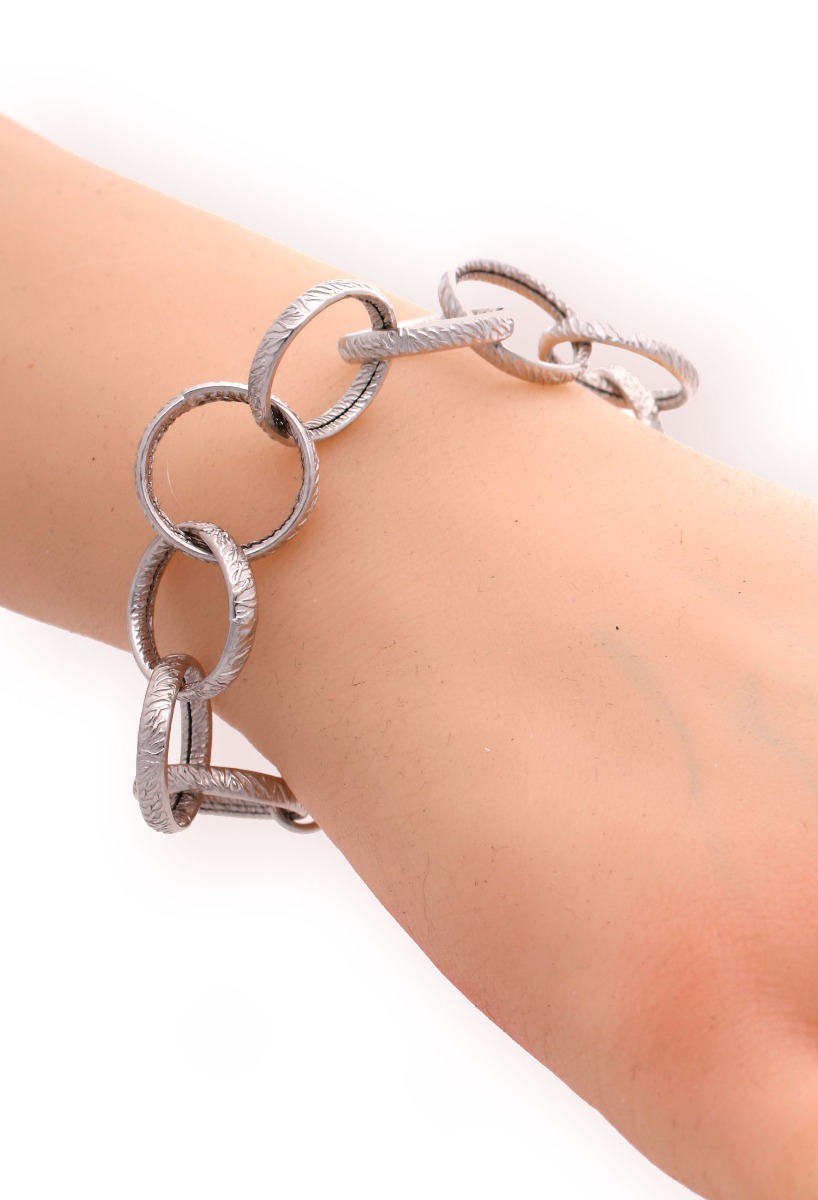 Pulsera de plata para mujer, cadena formada por asas redondas enlazadas de forma consecutiva, este bonito brazalete dispone de un cierre peculiar a modo de mosquetón, es un diseño sencillo que te puede acompañar en todo tipo de ocasiones, muy favorecedora y elegante es perfecta para combinar con diferentes estilos, si tienes que hacer un regalo sencillo que perdure con el paso del tiempo esta es una gran oportunidad porque además puedes comprarla a un increible precio que solo nuestra joyería online puede ofrecerte.