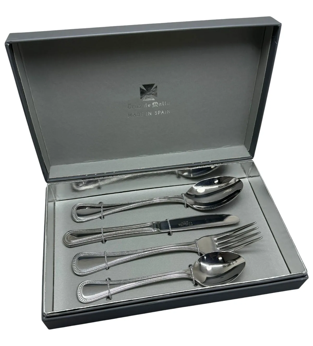 Los cubiertos entregados como regalo simbolizan unión familiar, convivencia y buenos deseos para el futuro. Por eso, este set PERLAS es una elección significativa para regalar en comuniones, simbolizando un paso hacia la madurez con elegancia y responsabilidad.
