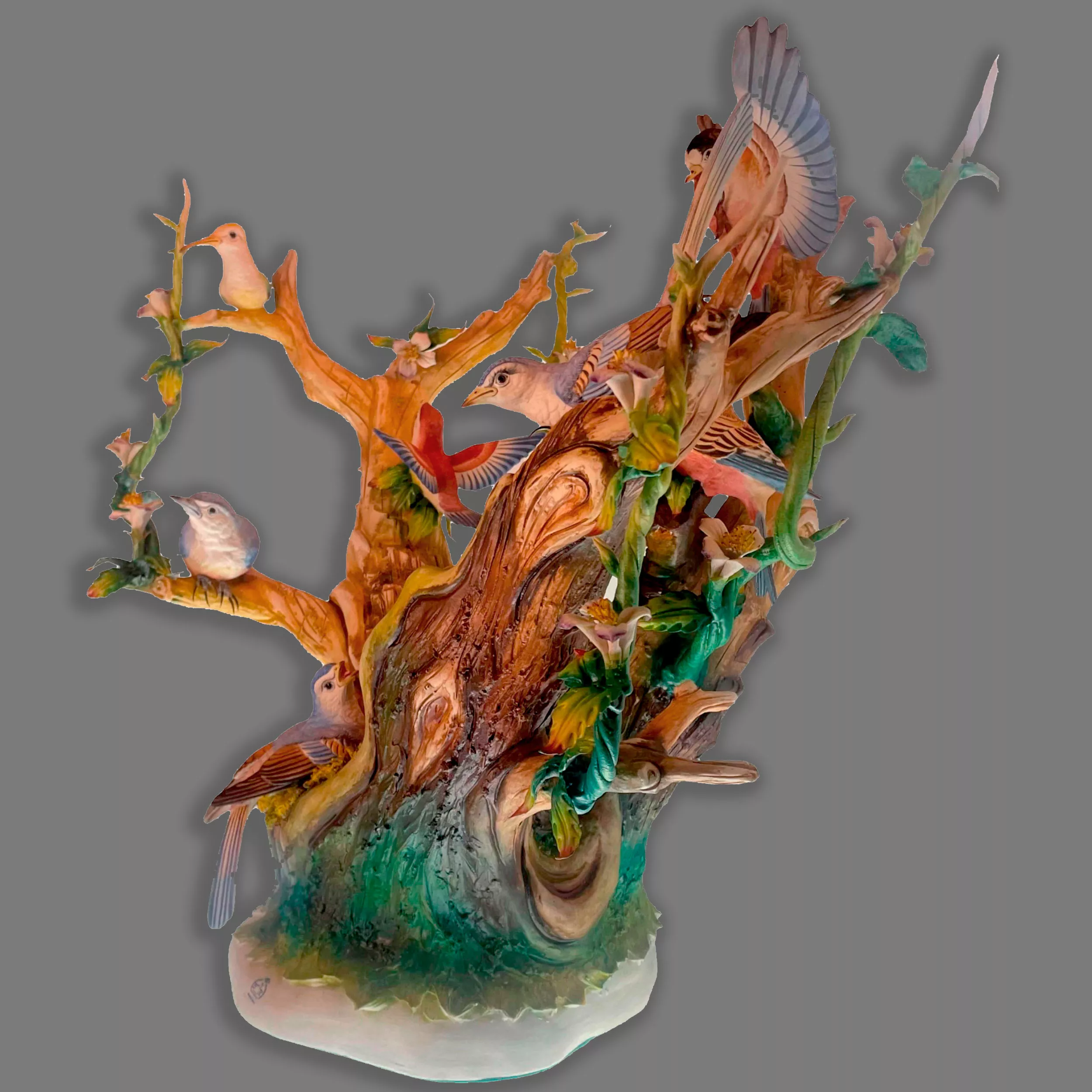 Sumérgete en la majestuosidad del Árbol Genealógico de Porcelana Nuevo Buen Retiro, una verdadera obra de arte que trasciende el tiempo y el espacio. Esta pieza hiperrealista, creada con esmero artesanal en la década de los años 90 del siglo pasado, es un testimonio de la habilidad y la dedicación de los artesanos que la hicieron posible. Con colores saturados y detalles meticulosos, esta figura única e irrepetible es mucho más que una simple decoración; es una expresión de elegancia y sofisticación que transformará cualquier espacio en el que se coloque.