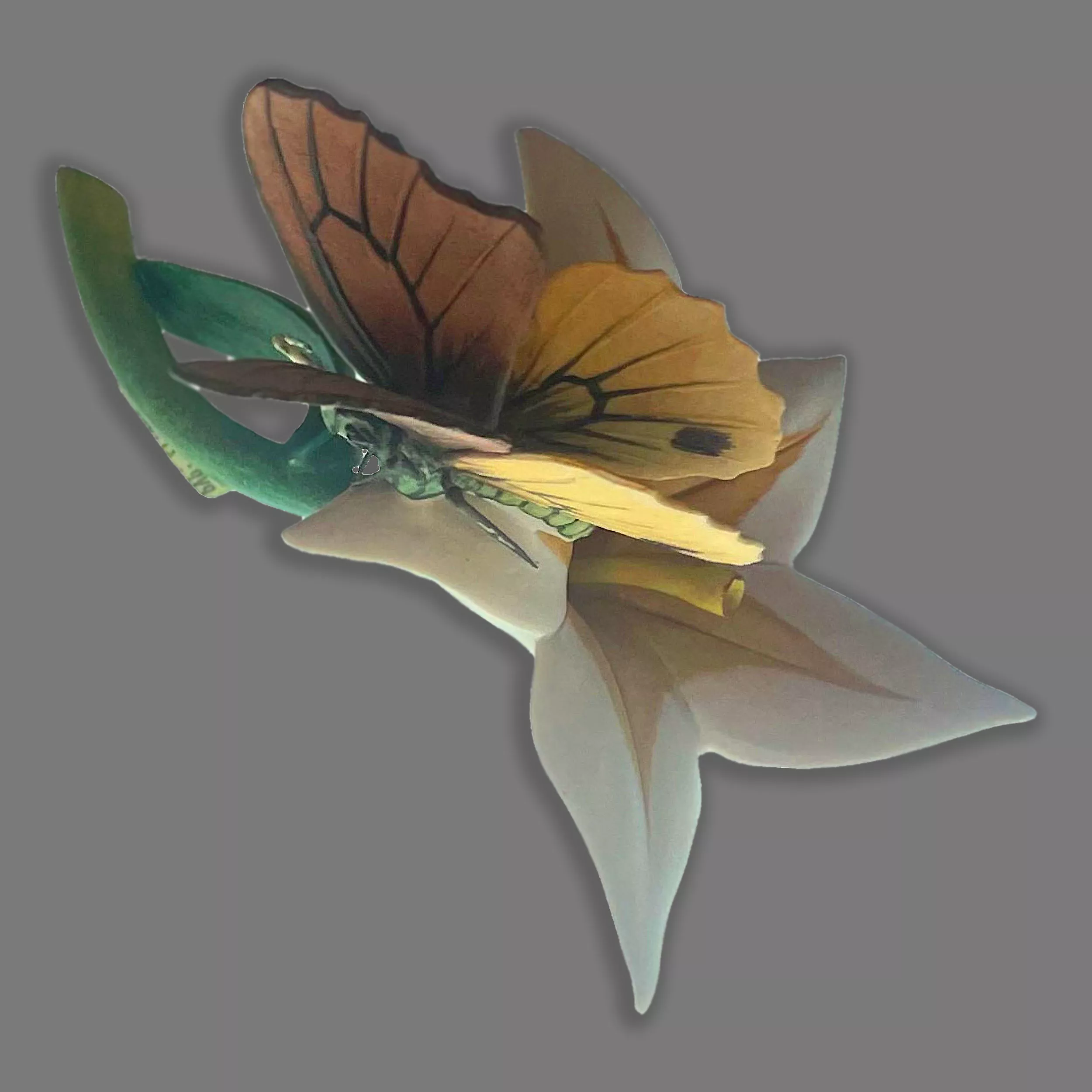 La Figura Porcelana Nuevo Buen Retiro Mariposa Amarilla representa una mariposa de tonos amarillos y anaranjados, delicadamente sobrevolando una exquisita flor con tonos similares. Cada detalle, desde las alas hasta los delicados pétalos de la flor, está meticulosamente representado para brindar un realismo deslumbrante. Esta figura captura la esencia de la primavera y añade un toque de frescura y vitalidad a cualquier espacio.