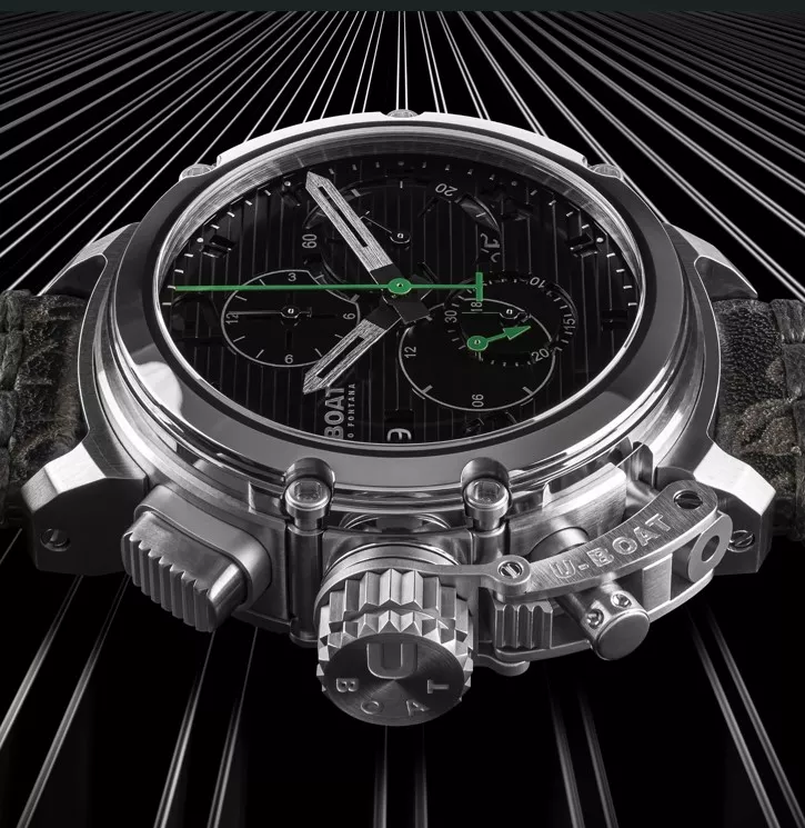 Reloj U-Boat Chimera 46mm Chrono SS Nero 9592 el U-Boat Chimera cronógrafo redefine el concepto del tiempo con su nueva esfera negra rayada, ofreciendo una tridimensionalidad única. Limitado a 300 piezas, incluye un sistema patentado de liberación de la corona para ajustar fecha y hora fácilmente.