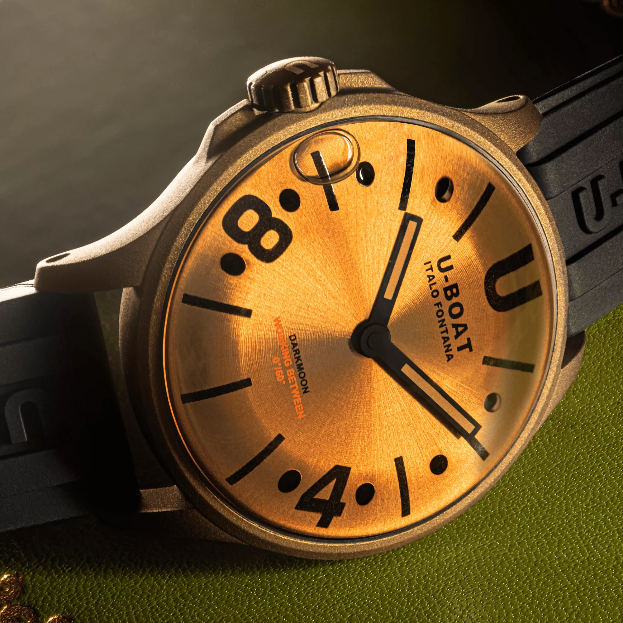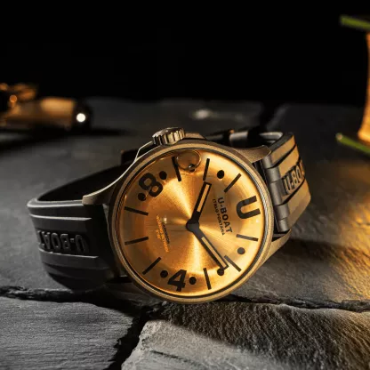 El Reloj U-Boat DarkMoon Black Vintage combina el atractivo diseño italiano con una estética vintage que nunca pasa de moda. Su caja de bronce, rellena de aceite especial, crea la ilusión de que el reloj carece de cristal, ofreciendo una experiencia visual única y cautivadora. Fabricado con acero AISI 316L, cristal de zafiro curvo de alta resistencia y una correa de caucho vulcanizado, este reloj se presenta como la mezcla perfecta de innovación y estilo. Con una resistencia al agua de 50 metros y un sistema de cierre innovador, es el complemento ideal tanto para eventos especiales como para el día a día. Descubre un reloj que redefine la sofisticación.