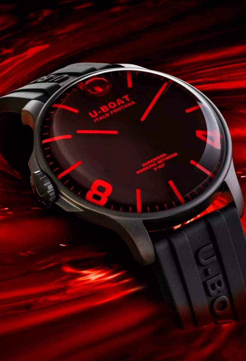 Reloj U-Boat Darkmoon con caja acero PVD y esfera roja y correa caucho sumérgete en el mundo de la relojería de lujo con el reloj U-Boat modelo 8466, diseñado para impresionar, este reloj combina una estética vanguardista con una precisión excepcional, brindándote una experiencia única en cada momento.