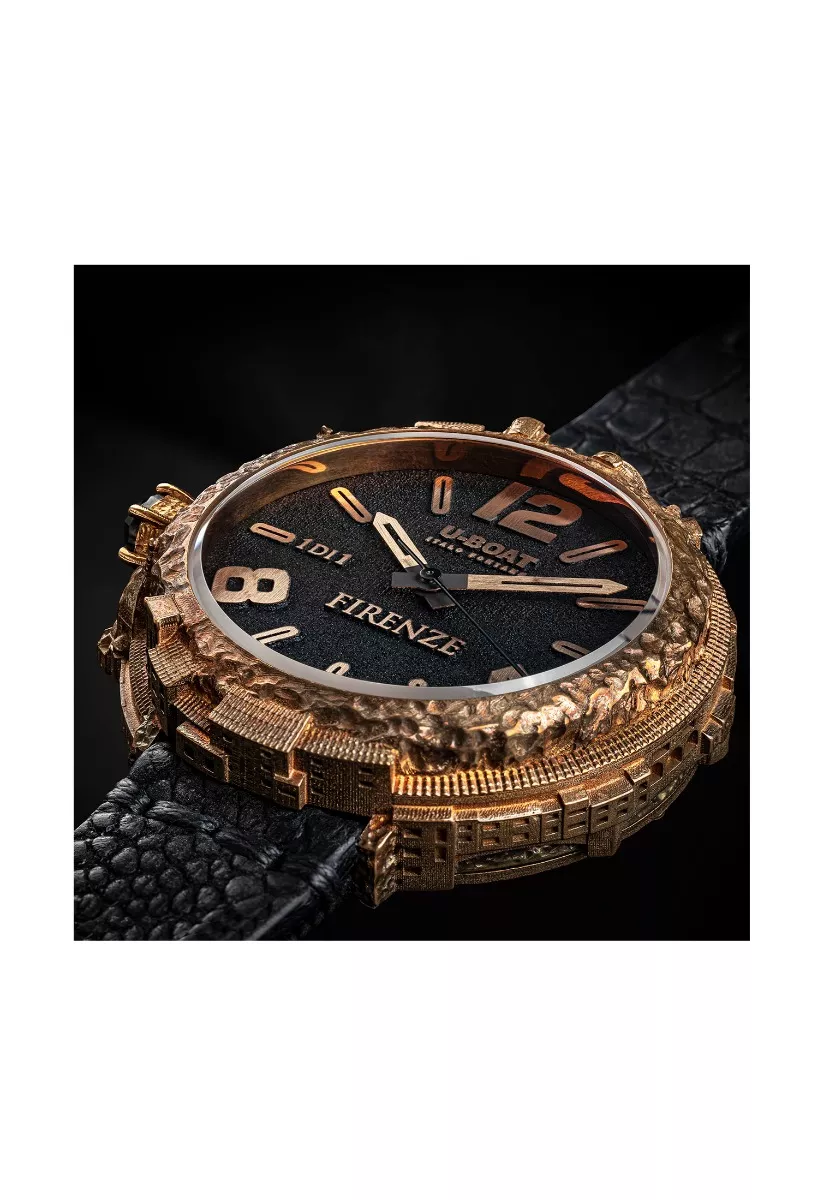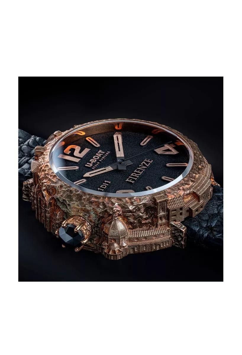 Reloj U-Boat Firence 925 Diamond bronce y diamante negro , bienvenido a una obra maestra relojera que rinde homenaje a la majestuosidad de Florencia: el Reloj U-Boat de caja de bronce envejecido. Inspirado en los icónicos monumentos de la ciudad, como el Ponte Vecchio y la Catedral de Santa María del Fiore, este reloj es una verdadera joya de la relojería.