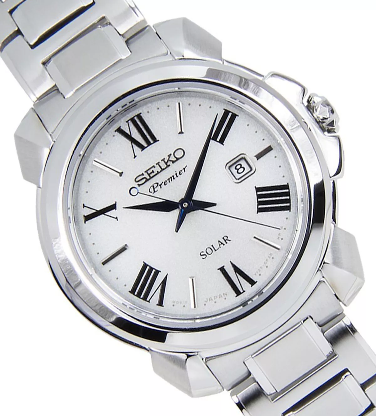 El reloj Seiko Premier Solar utiliza energía solar para alimentar su movimiento de cuarzo. Al exponerse a la luz, la batería interna se recarga automáticamente.