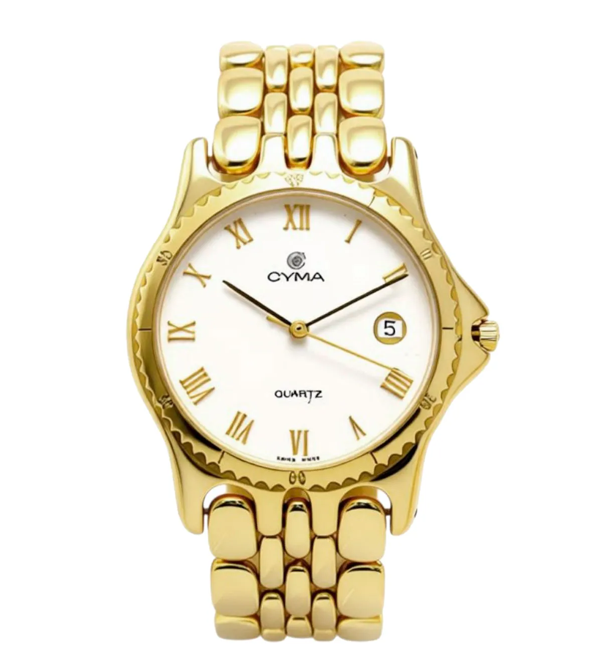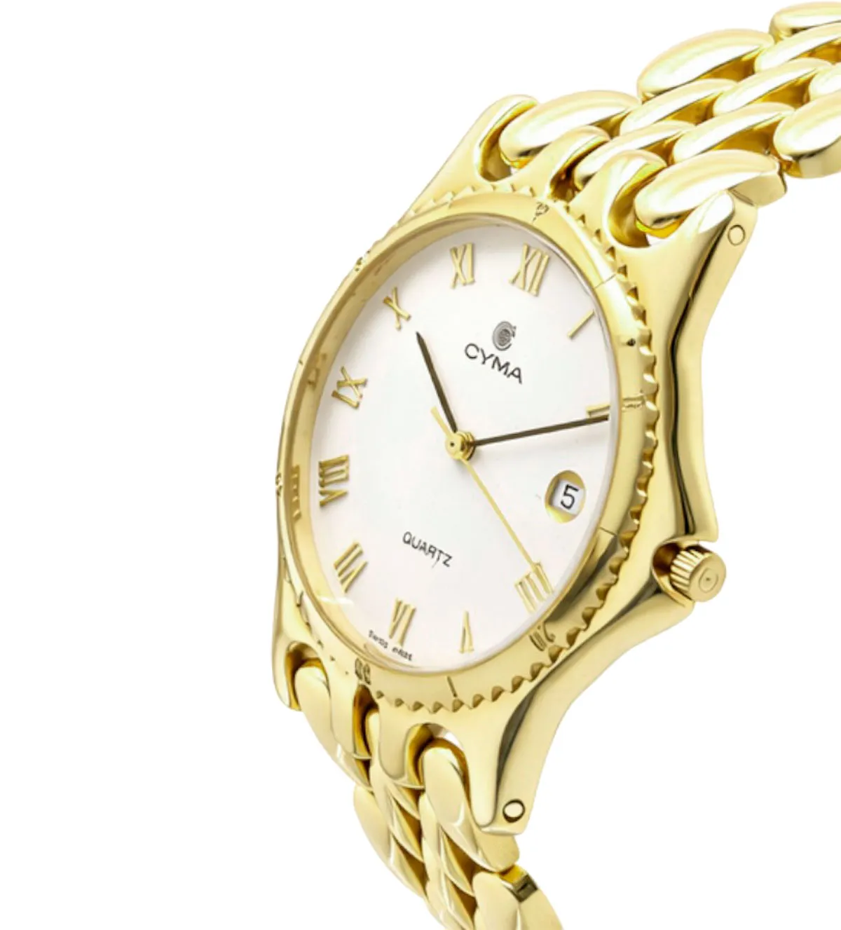 Ingeniería suiza y diseño elegante. El reloj Cyma de oro amarillo, una inversión en precisión y estilo.