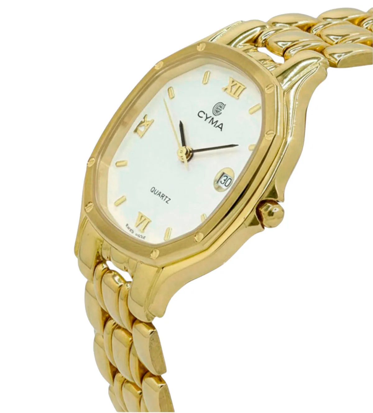 Eleva tu estilo con este exquisito reloj de oro para mujer, fabricado en oro amarillo de 18 kilates. Su caja octogonal (27,50 mm de diámetro) con bisel decorado y esfera blanca combina índices y números romanos con calendario a las 3. El brazalete tipo panther con cierre oculto garantiza comodidad y seguridad, evitando caídas accidentales. Con un diseño elegante y un peso ligero de 47 g, es perfecto para lucir en ocasiones especiales. Producto en stock con entrega inmediata. ¡Hazlo tuyo antes de que se agote!