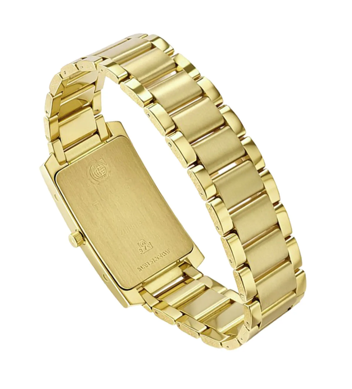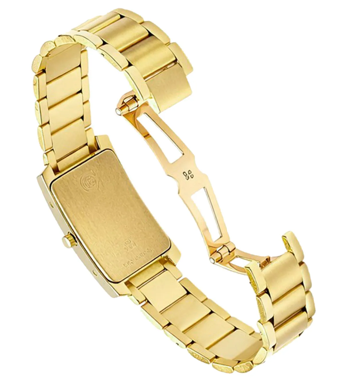 Este reloj de oro para mujer está fabricado con materiales de la más alta calidad, comenzando por su caja de oro de 19,80 mm de ancho y 27,70 mm de alto, que destaca por su acabado de brillo. La caja rectangular no solo es visualmente atractiva, sino también resistente y duradera. El brazalete, compuesto por eslabones combinados de acabado mate y brillo, complementa perfectamente la caja, creando un equilibrio perfecto entre sofisticación y modernidad.