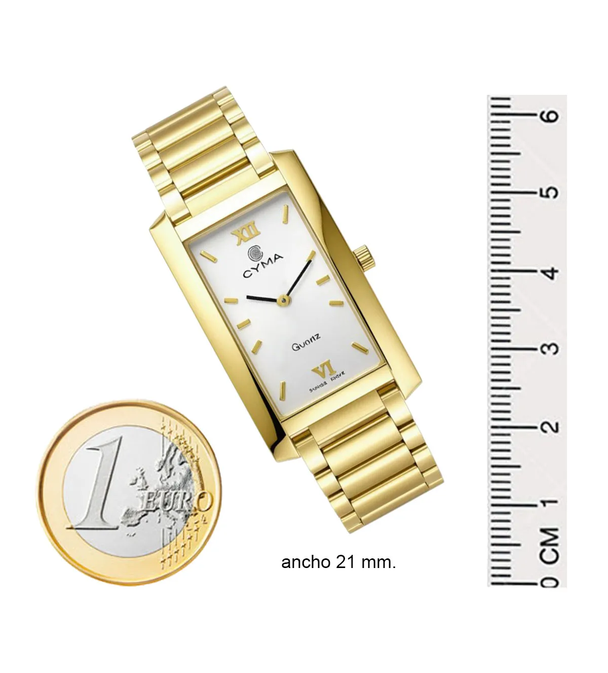 El reloj de oro para mujer de Cyma es el regalo perfecto que combina elegancia y tecnología. Su caja rectangular con biseles de acabado brillo alberga una esfera blanca con índices y números romanos. El brazalete de eslabones, con acabado mate y brillo, aporta un estilo sofisticado, mientras que el mecanismo de cuarzo suizo garantiza precisión. El cierre oculto de seguridad asegura una experiencia de uso cómoda y segura. Con un peso de 53,50 gramos, este reloj es ideal para cualquier ocasión. ¡Producto en stock con entrega inmediata, no te lo pierdas!