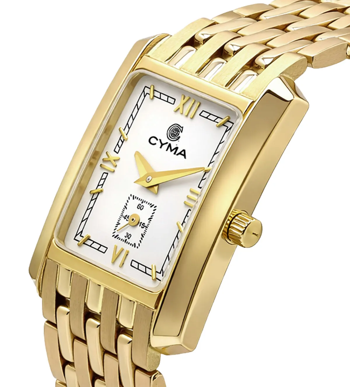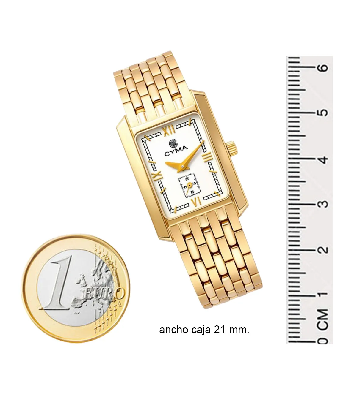 El diseño de este reloj de oro es moderno y sofisticado. Su caja rectangular de 21×23 mm y la esfera blanca con numeración combinada de índices y números romanos a las 6 y las 12 ofrecen un equilibrio perfecto entre estilo clásico y contemporáneo. El pequeño esferín cuadrado que marca los segundos a las 6 añade un toque único al diseño, destacando aún más la belleza de la pieza.