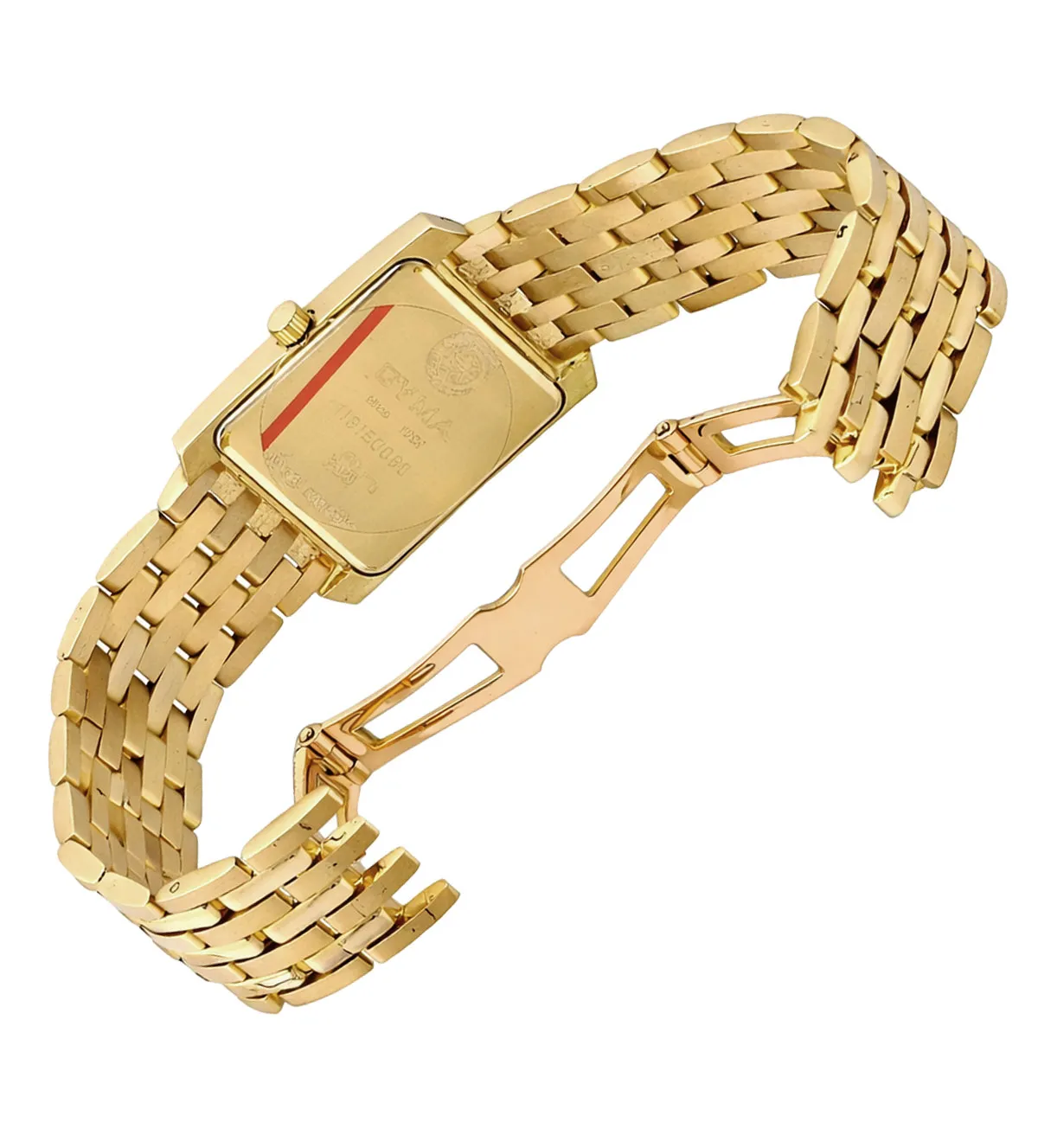 Este reloj de oro para mujer está hecho con materiales de la más alta calidad, lo que lo convierte en una pieza duradera y lujosa. La caja rectangular de 21×23 mm está fabricada en oro amarillo de 18 kilates, un material reconocido por su resistencia y belleza. Este oro es ideal tanto para el uso diario como para ocasiones especiales, manteniendo su brillo y elegancia durante años.