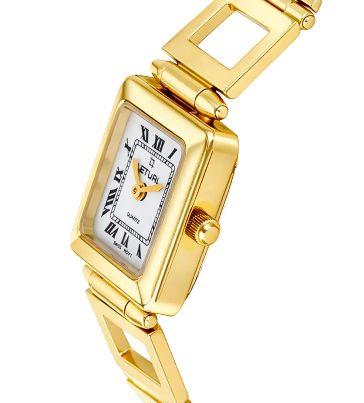 Este reloj de oro Letual para mujer, fabricado en oro de 18 kilates, es una joya que trasciende el tiempo. Con su caja cuadrada, brazalete de eslabones calados y esfera con números romanos, ofrece elegancia y distinción. Un legado que perdurará por generaciones. Disponible para entrega inmediata. Hazlo tuyo hoy.