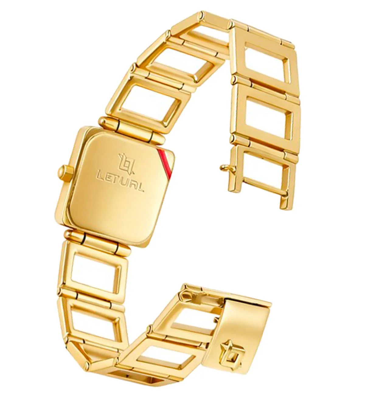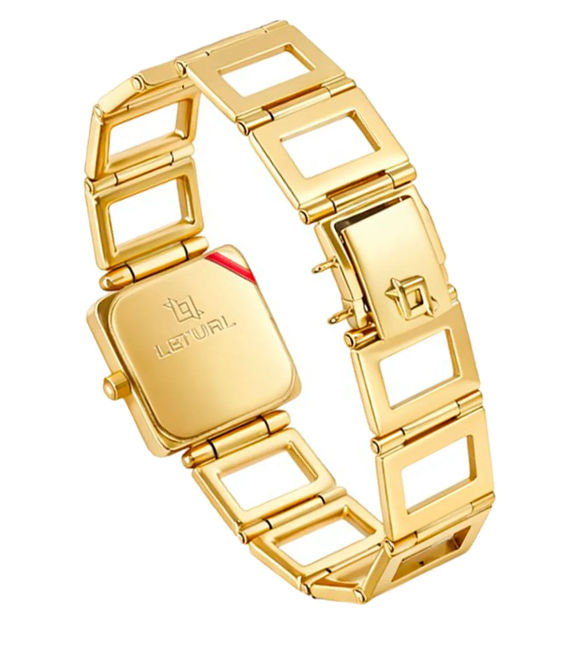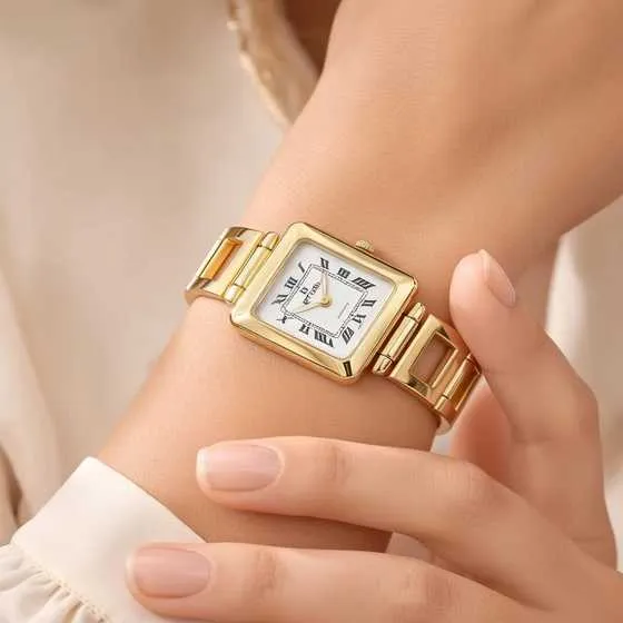El diseño del reloj Letual refleja un equilibrio perfecto entre elegancia y funcionalidad. Su caja cuadrada de 20×20 mm le da un aire sofisticado y femenino, mientras que la esfera blanca, adornada con números romanos, añade un toque clásico que nunca pasa de moda. El brazalete de eslabones calados rectangulares se ajusta cómodamente a la muñeca, ofreciendo un acabado refinado y moderno. El cierre oculto de seguridad asegura que el reloj permanezca firmemente en su lugar, incluso en los días más ajetreados.